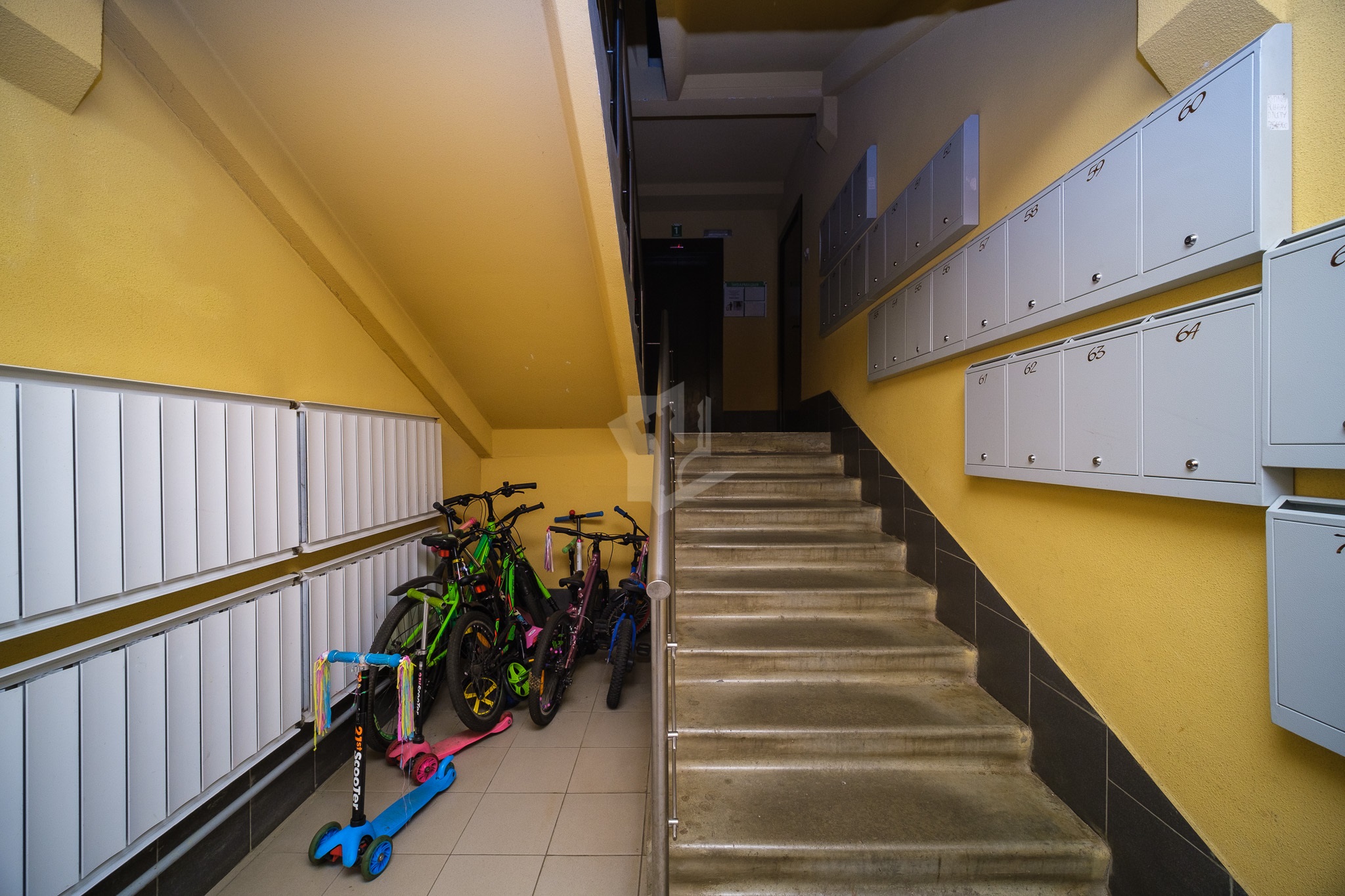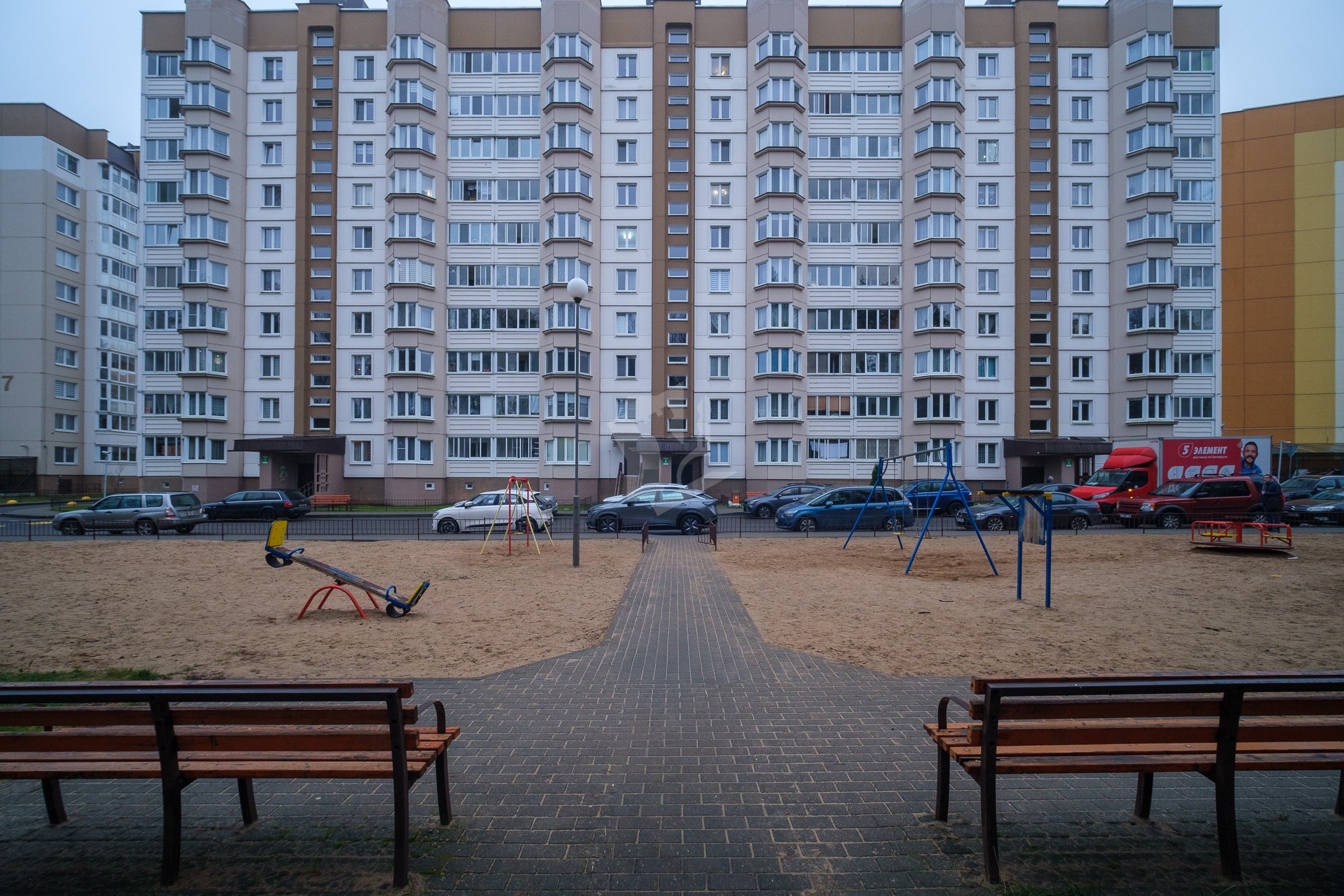 аккуратный подъезд. Просторный двор с детской