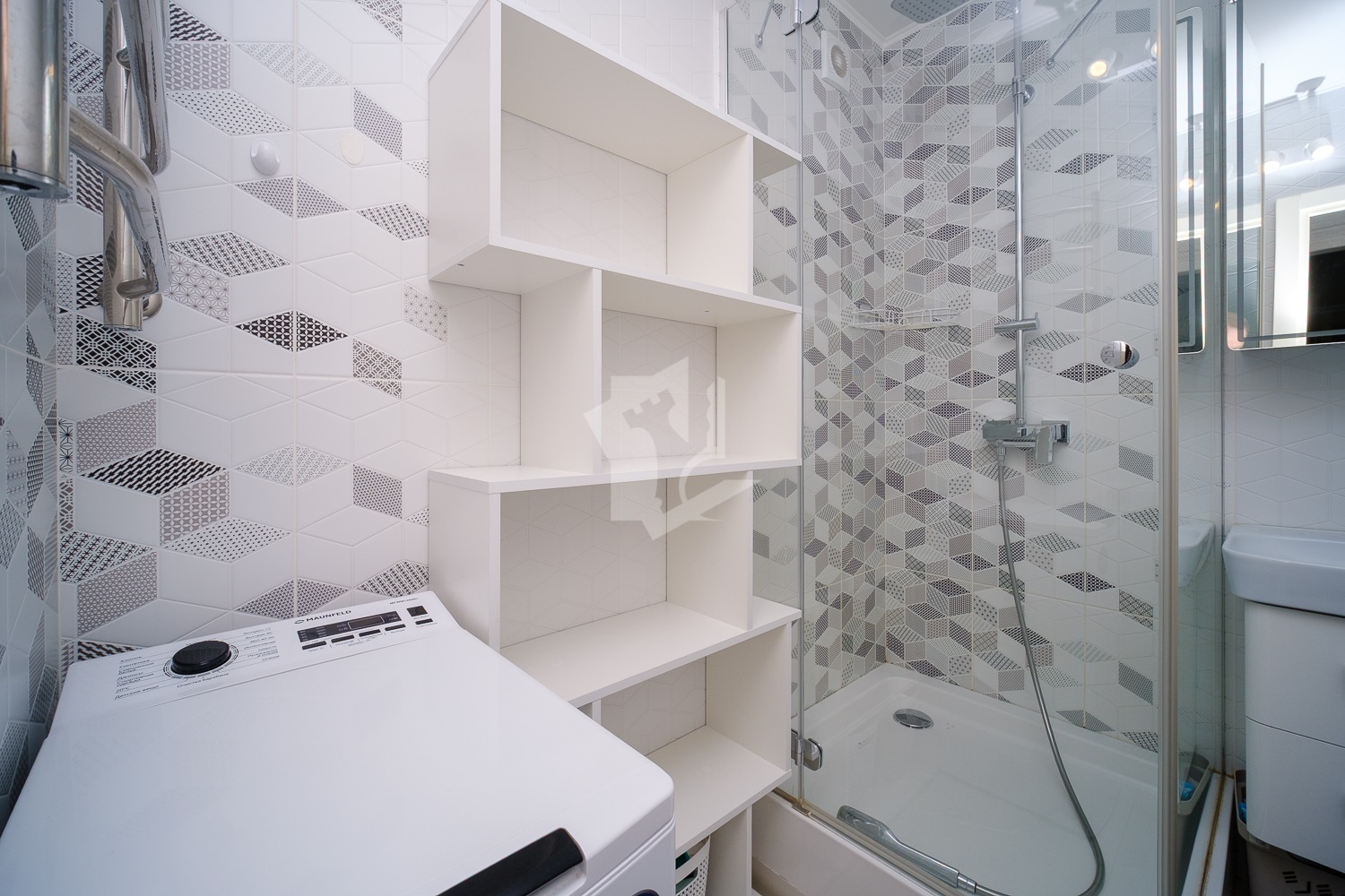 • Современный ремонт: на полу — ламинат, в санузлах — стильная керамическая плитка, установлена удобная душевая кабина и качественная сантехника