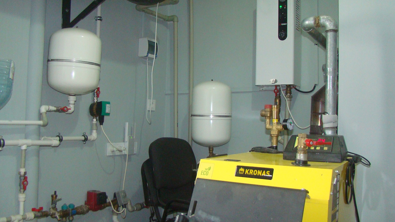 Отопление- два котла (твердотопливный, электрический) с лучевой системой подключения радиаторов.