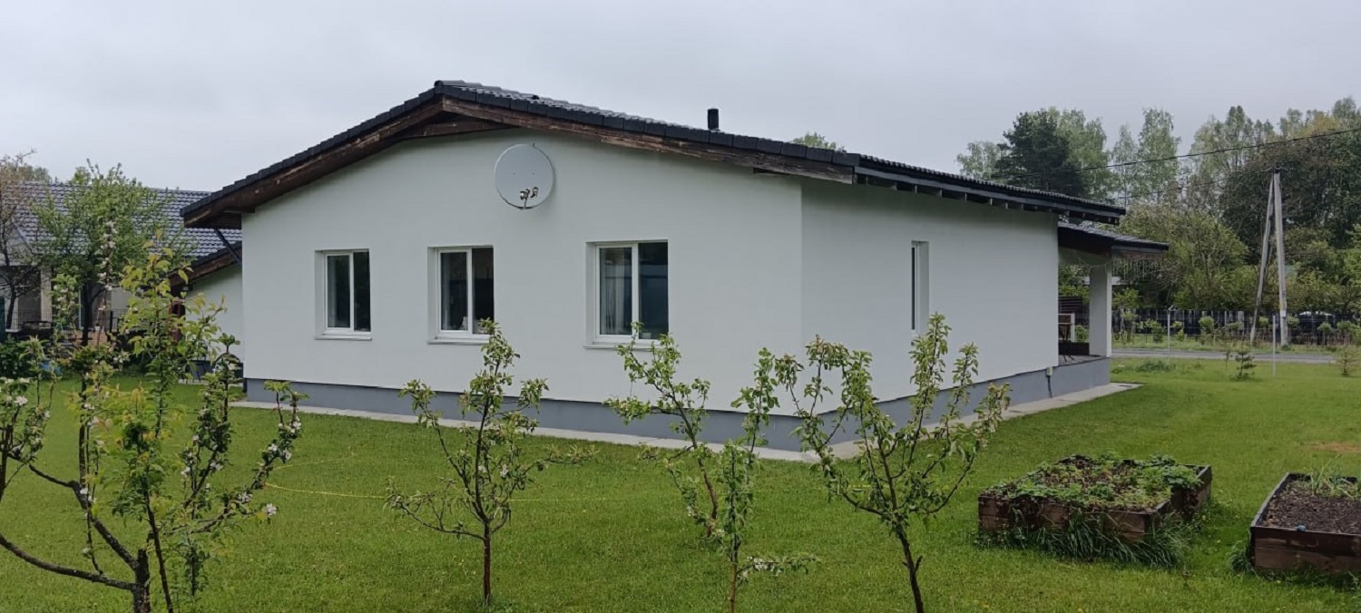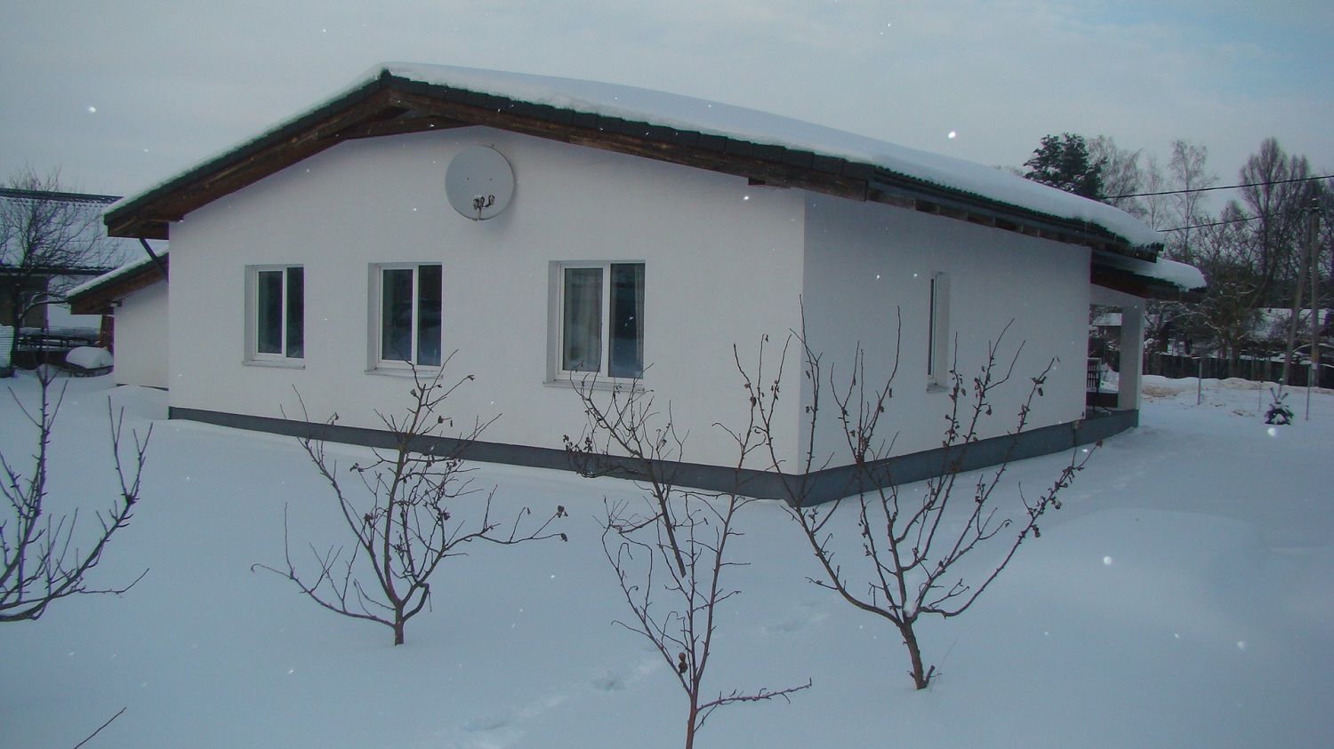Наружная отделка: термошуба толщиной 50мм, с декоративной штукатуркой по типу «корник», финишная покраска.