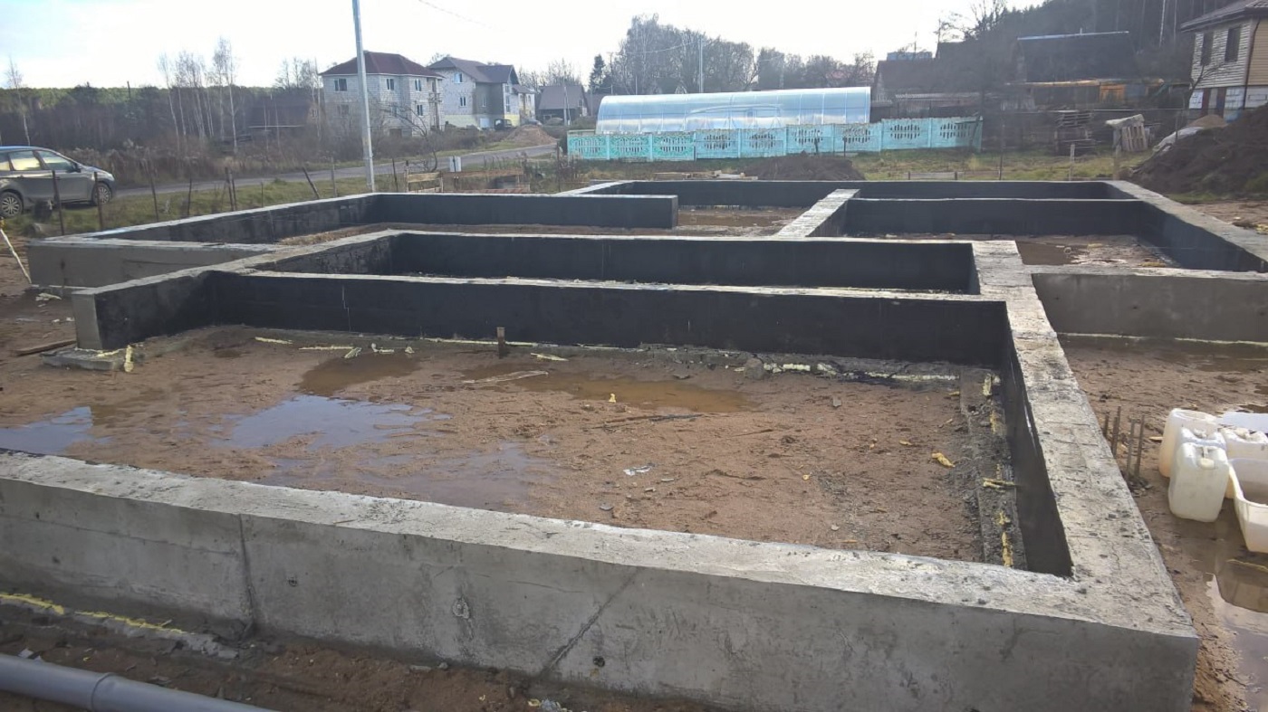 Пол -песчаная подготовка -500мм, бетонный черновой пол ( армированный сеткой)-100мм, утеплитель -100мм , цементно песчаная стяжка – 60мм , теплый пол в гостиной , туалет , ванная.