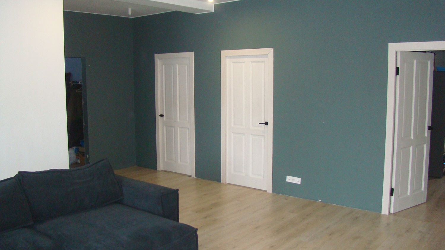 Внутренняя отделка: Сан узлы -Керамогранит, керамическая плитка; Стены и перегородки жилых комнат -Штукатурка по стекло сетке, шпатлевка по стекло сетке, покраска. Потолок- подвесной гипсокартон. Высота от пола до потолка 2850мм.