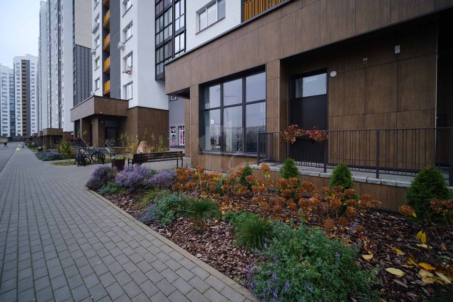 - придомовая территория с зелёными зонами, детскими и спортивными площадками