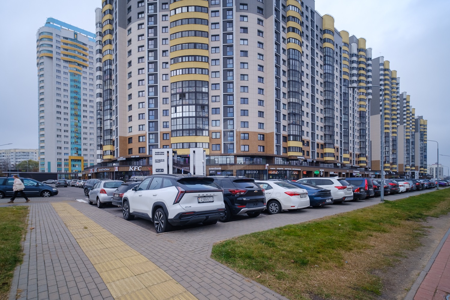 Множество магазинов: Алми, Евроопт, Мила, ТЦ Кирмаш, ТРЦ Титан, рынок, дом быта, банки, аптеки, салоны красоты, фитнес-центры, детская и взрослая поликлиники, кафе и рестораны, Mak.by, KFC и др., а также детские сады и школы.