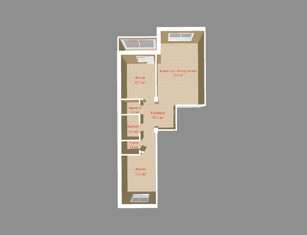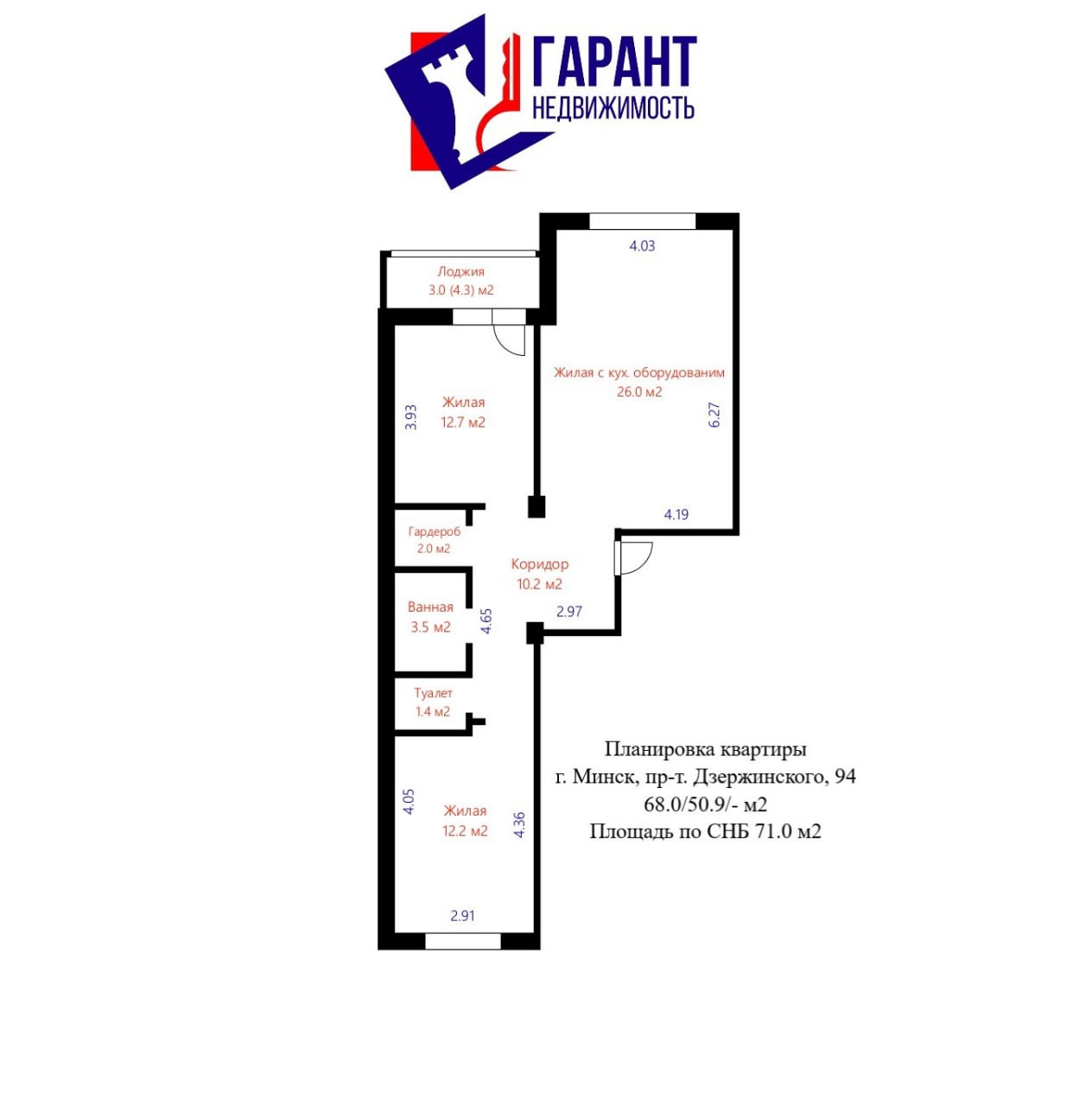 Площадь: СНБ – 71 м2/ Общая – 68 м2/ Жилая – 50.9 м2.