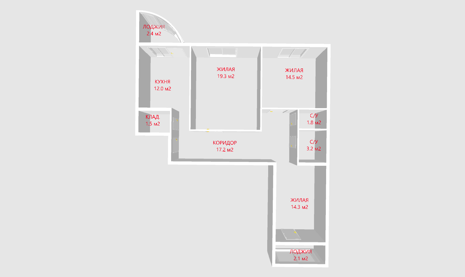 Жилая площадь 48,1 м2 - распределена между тремя изолированными комнатами.