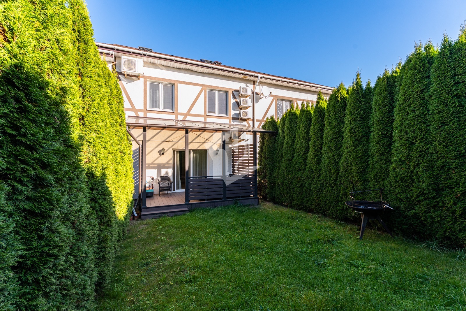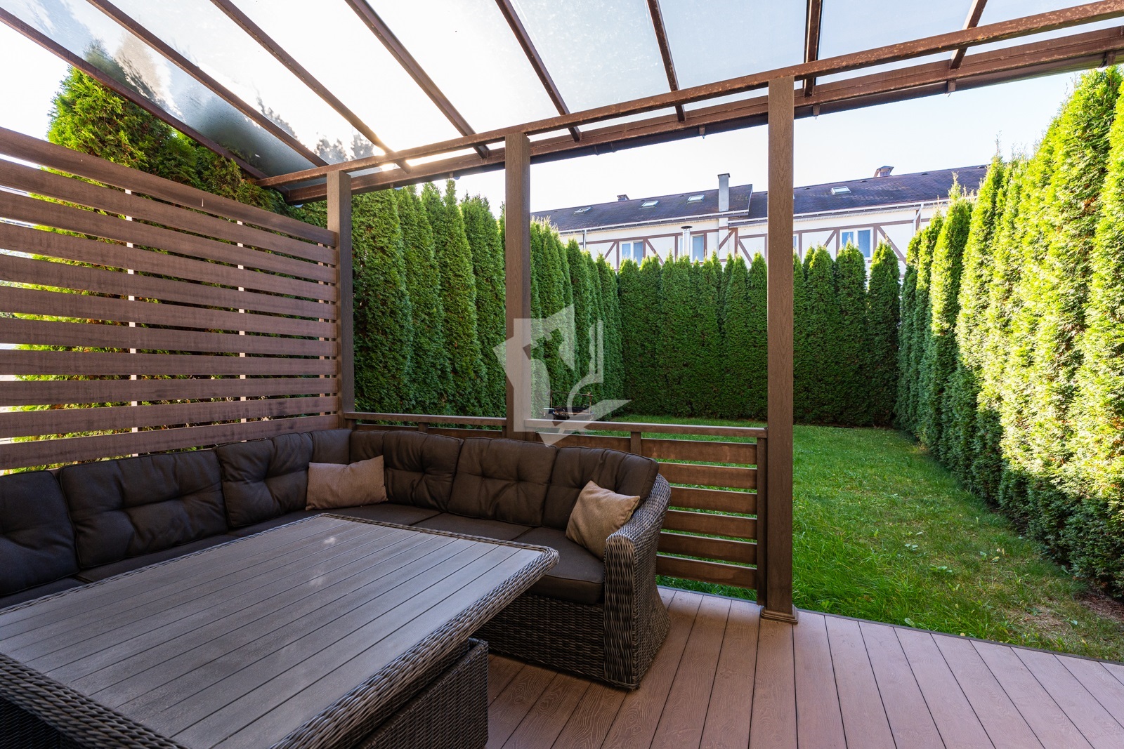- к террасе прилегает ухоженный участок 2,17 сотки, на котором по периметру растут туи с автополивом. Туи образуют естественный барьер, который обеспечивает уединение и снижают уровень шума