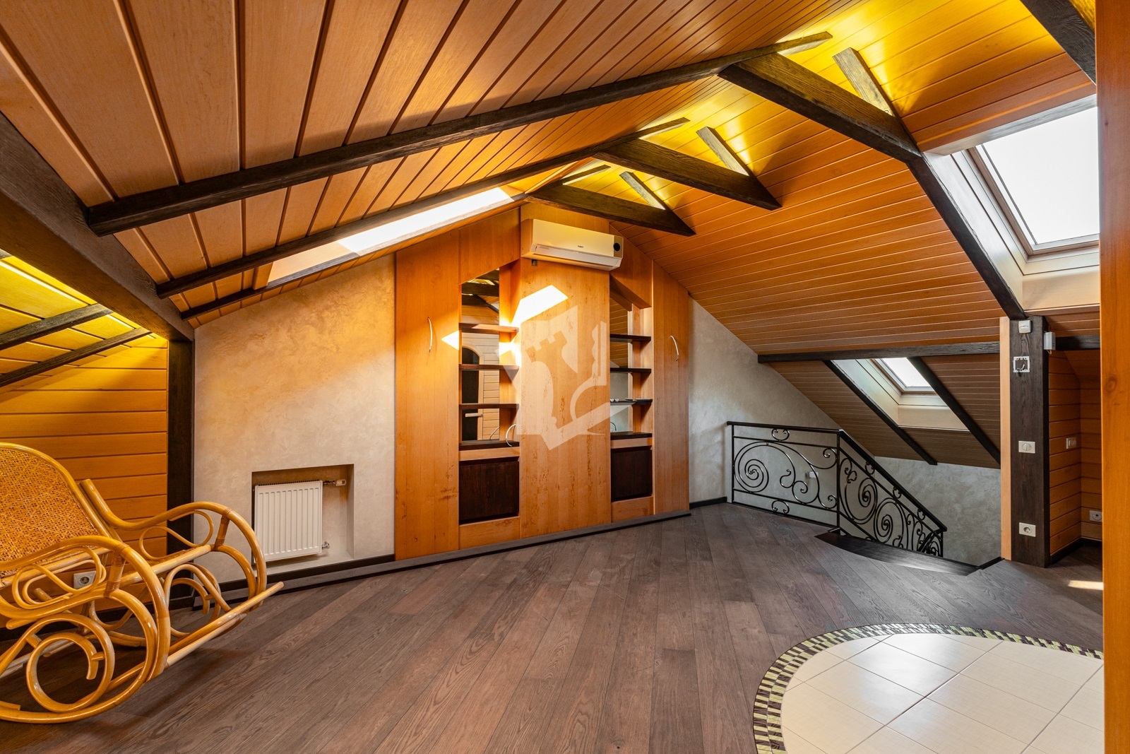Ремонт сделан по индивидуальному дизайн-проекту с использованием высококачественных материалов. Все коммуникации - центральные (электричество, водопровод, канализация, газ), система очистки воды, газовый котел, система рекуперации воздуха. В каждом помещении установлены кондиционеры: сплит системы Mitsubishi и Tosot (5 штук)