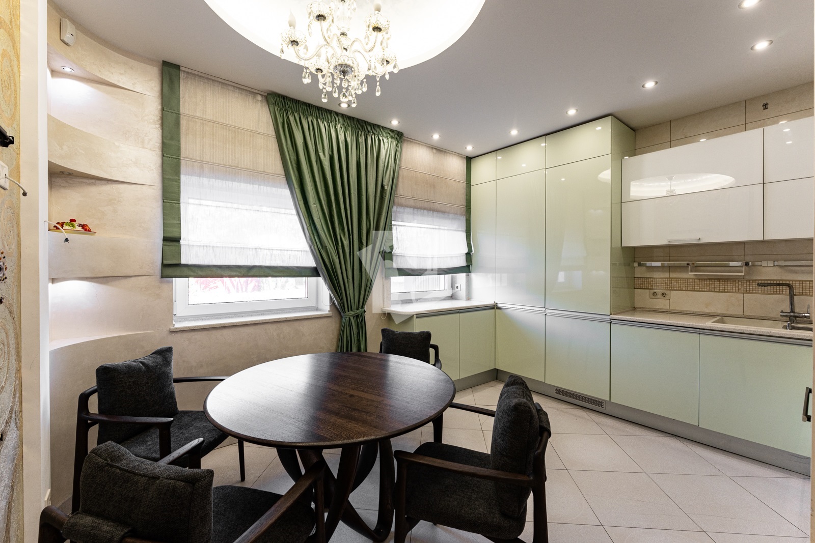 - полностью укомплектованная техникой кухня с дубовым столом и стульями