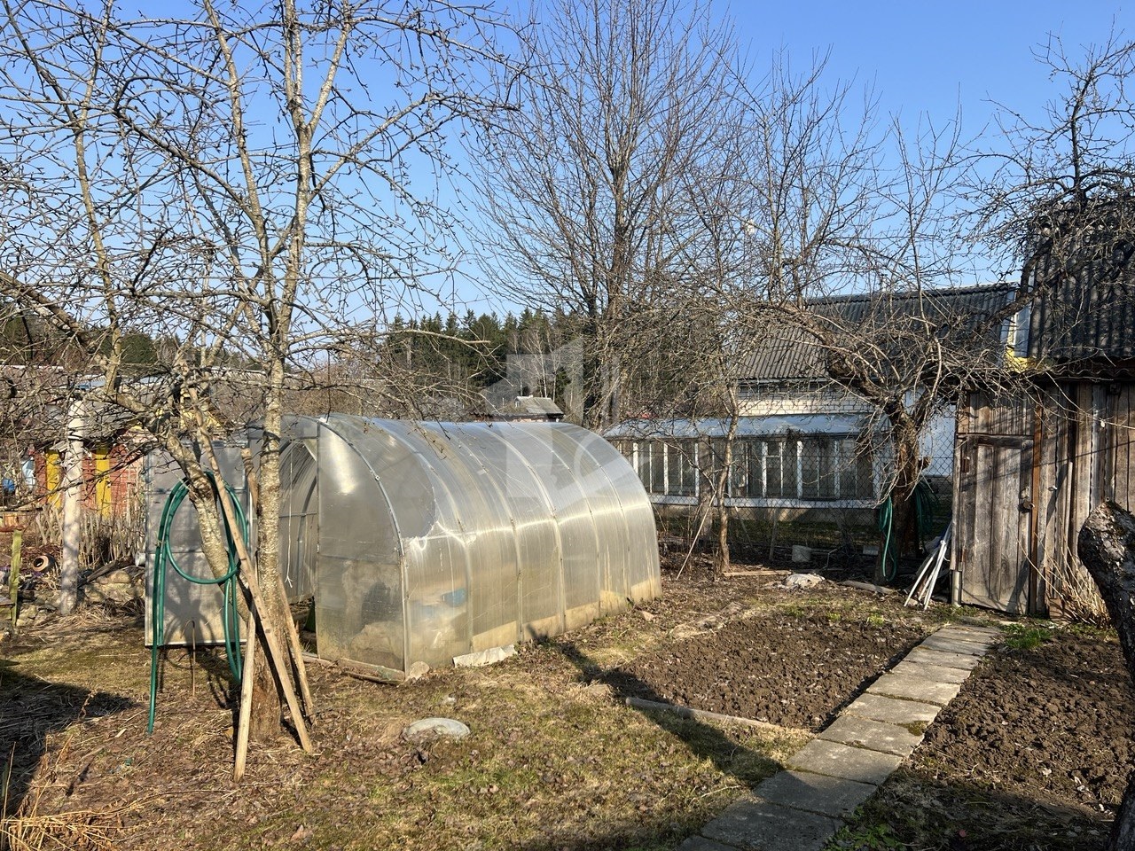 На участке — полная автономия. Своя теплица для тех, кто любит томаты с грядки. Хозблок с отдельным санузлом — это не просто удобство, это чистота в доме и свобода не тащить грязь с огорода внутрь.