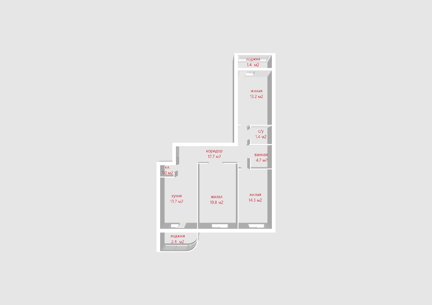 Квартира расположена на 12 этаже 14-этажного кирпичного дома 2004г.Удобная рациональная планировка: изолированные комнаты 19,8м., 14,3м. и 13,2м., просторная кухня 13,7м с мебелью и бытовой техникой, раздельный санузел.