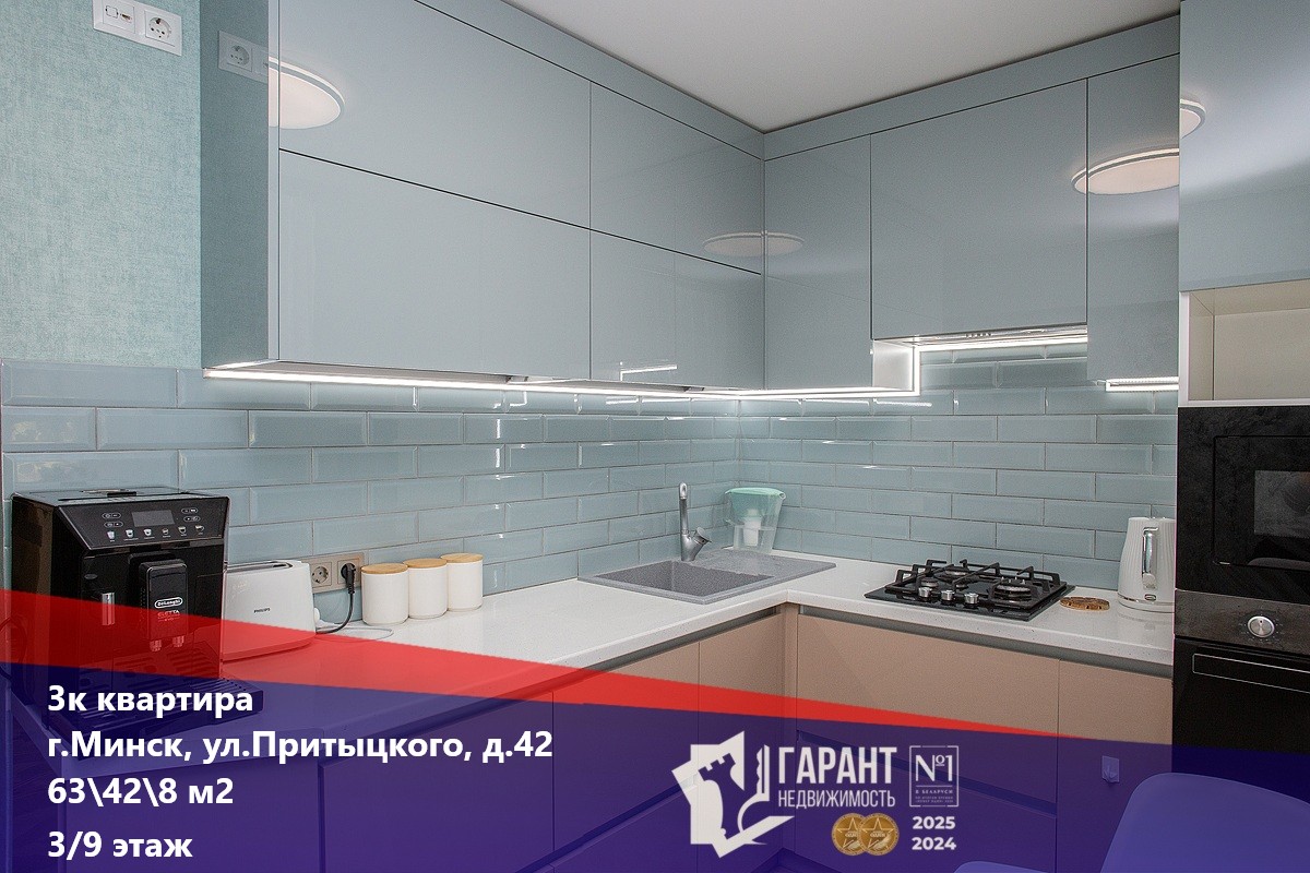 Продается отличная трехкомнатная квартира, площадь по СНБ 65,0 м2 с современным ремонтом на 3-м этаже 9-и этажного дома на улице Притыцкого 42. Капитальный ремонт дома был в 2019 году. Квартира отремонтирована в 2024 году. В квартире хорошая планировка: просторная кухня 8,1 кв.м.,широкий коридоры, три комнаты: 12,3кв.м., 11 кв.м, 18,3 кв.м., раздельный санузел, оптоволокно. Из комнаты спальни выход на балкон. Балкон застеклен, профиль КВЕ, двойной стеклопакет, утеплена стена. Можно сделать кабинет. В квартире выполнен качественный ремонт: на полу в жилых комнатах и в коридоре паркет штучный, высококачественная металлическая входная дверь, установлена встроенная кухня с техникой, два вместительных встроенных шкафа, качественные диваны. Качественные стеклопакеты. Проходные выключатели. Продумана ниша для холодильника, узаконена. В доме установлена система видеонаблюдения, аккуратный подъезд, хорошие соседи. Рядом ст.м. Пушкинская и Спортивная. (3-5 минут пешком), многочисленные магазины, торговые центры. Во дворе дома детские сады, школа, можно спокойно отпускать детей в школу или детский сад, не бояться за переход через дорогу. Три окна выходят во двор, одно на улицу.Через дорогу «Тивали», Ледовый дворец, парк. Это отличный вариант для комфортной и счастливой жизни! В квартире прописан один человек, выпишемся в день.