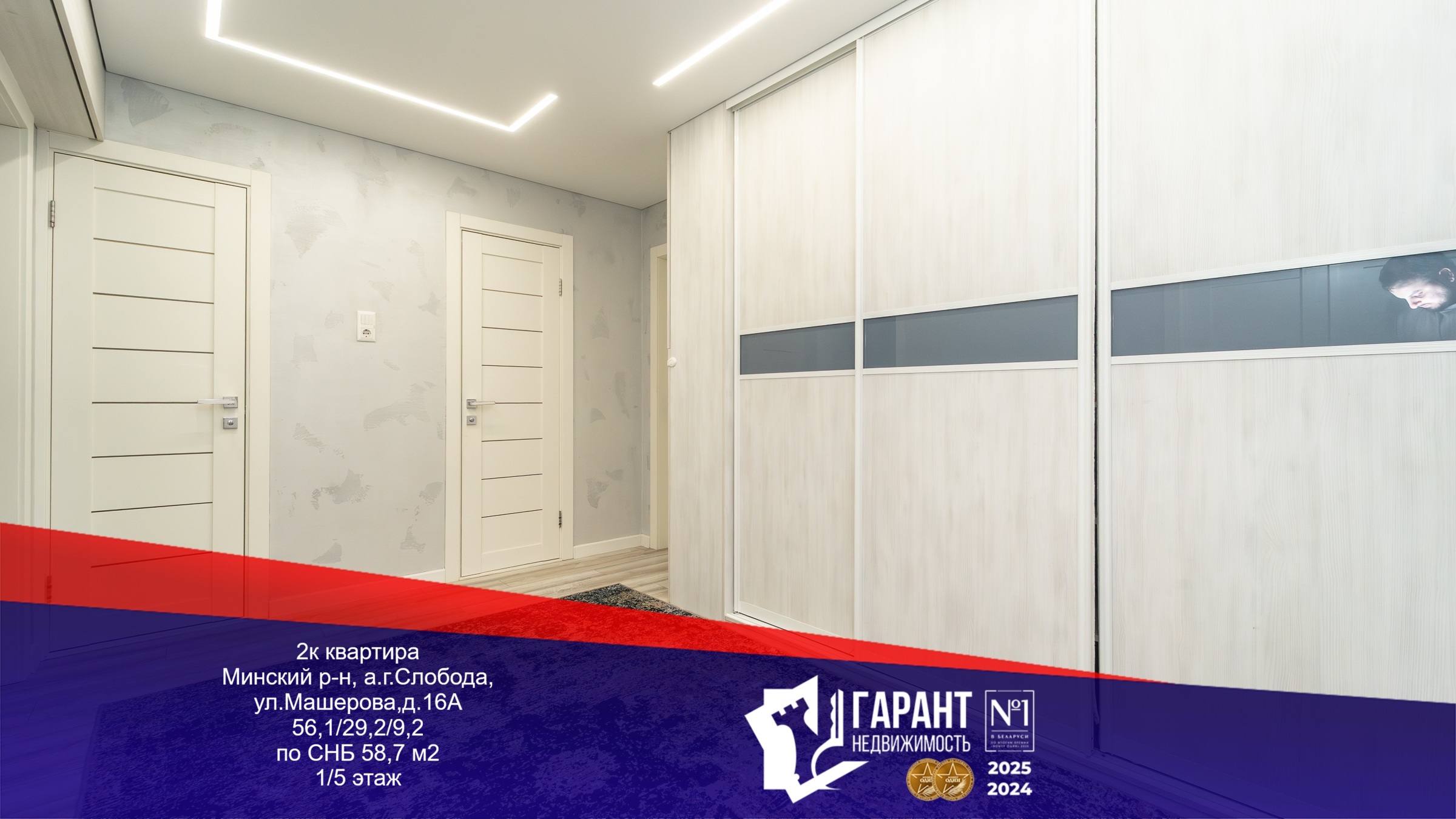 Продаётся тёплая, уютная 2-х комнатная квартира в аг. Слобода в Смолевическом р-н возле Кургана Славы. Квартира светлая в новом панельном доме, площадью 56.1/29.2/9.2 на первом этаже. С высоким цоколем, застеклённая лоджия пакетами ПВХ, входная дверь металлическая.