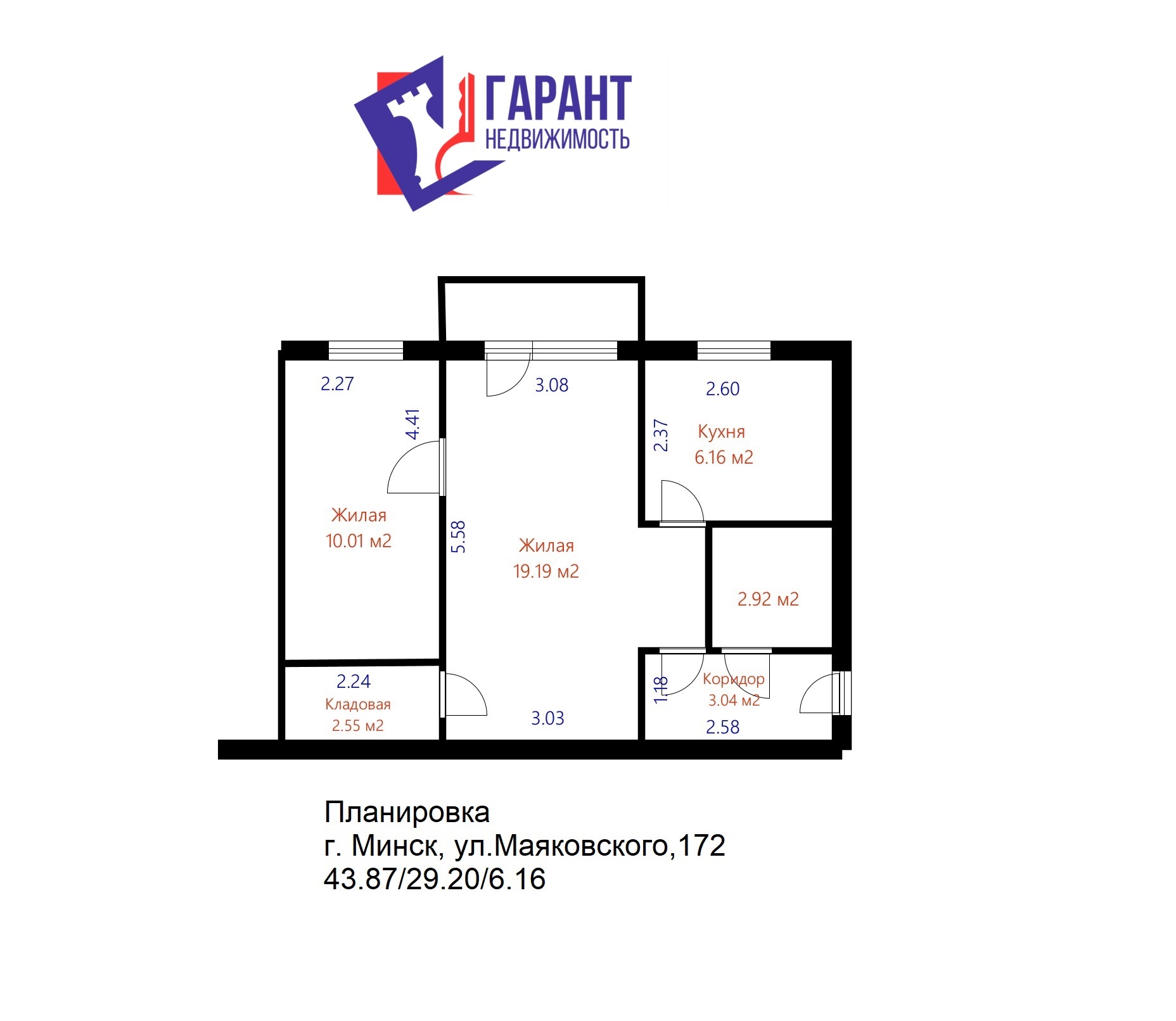 В продаже аккуратная 2-х комнатная квартира общей пл. 43.87 кв.м.