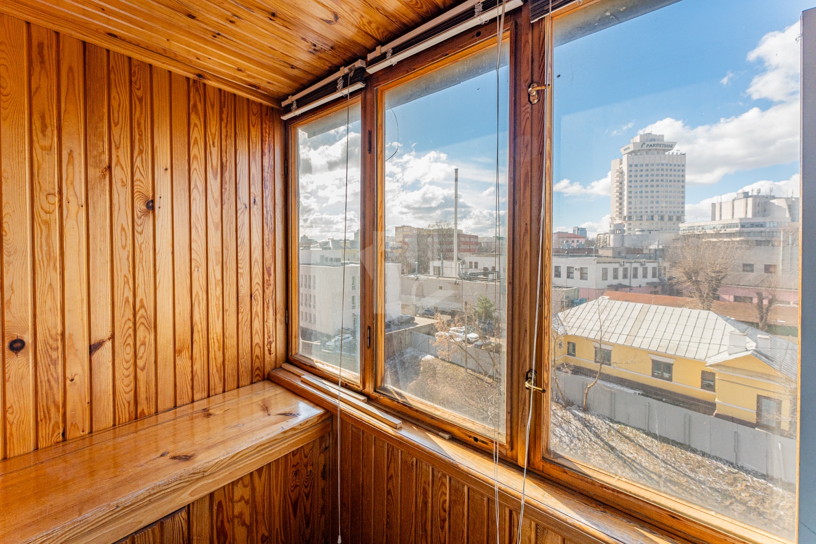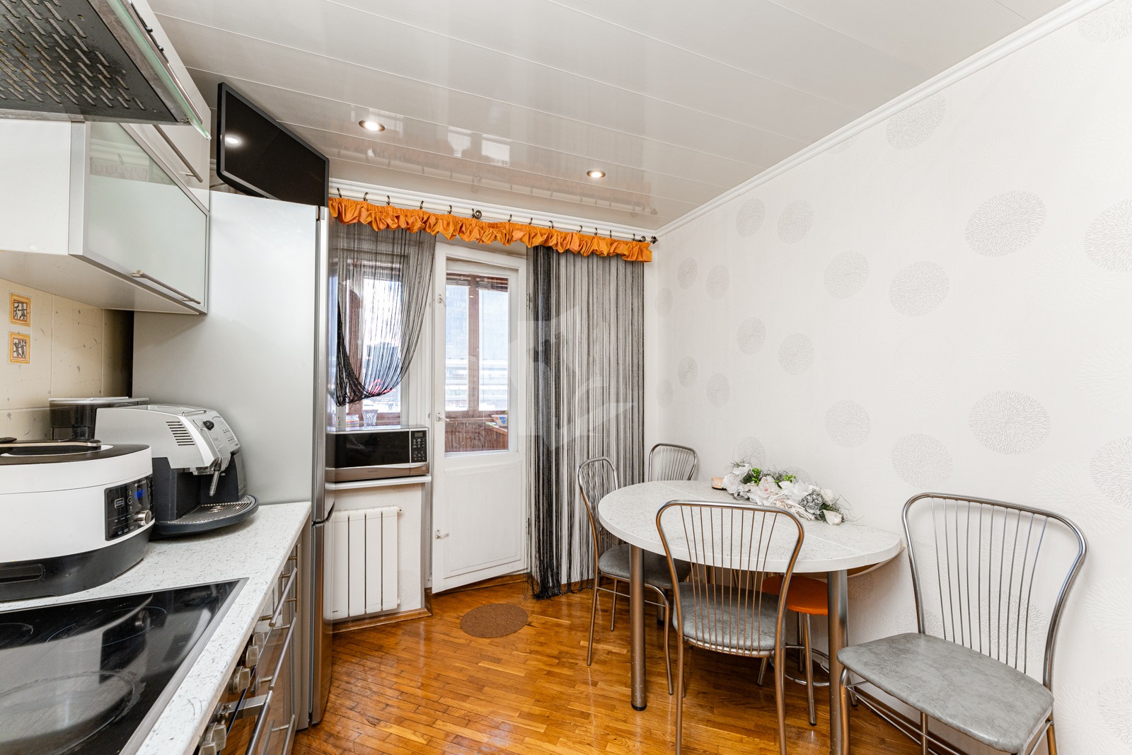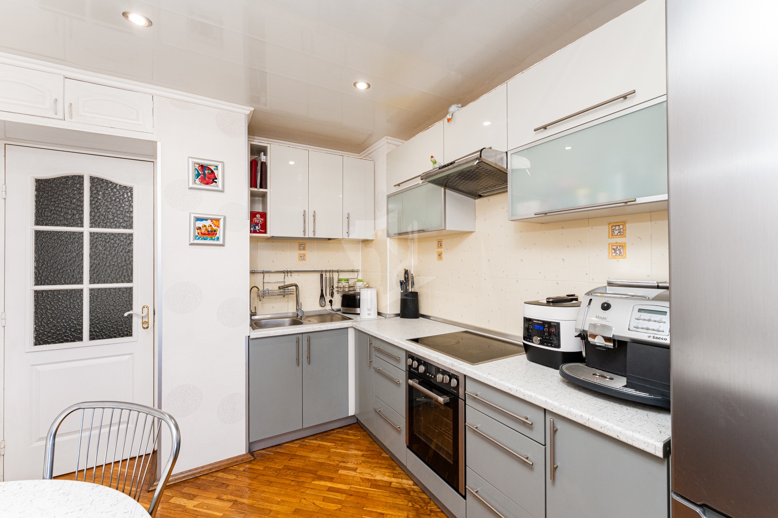 Просторная кухня 8.6 кв.м. с выходом на лоджию и обзором на ТРЦ Galleria Minsk.Установлен новый кондиционер General.