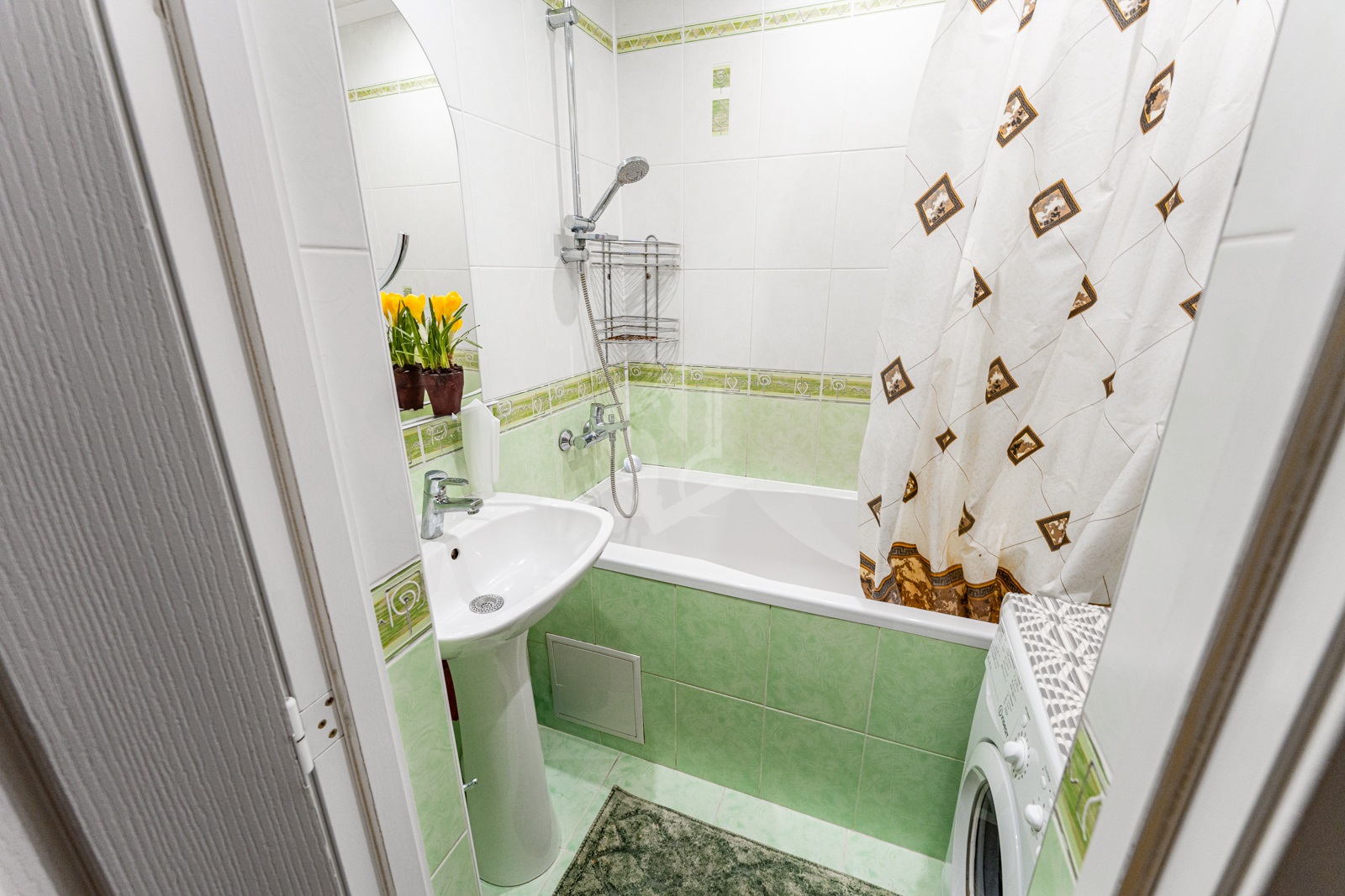 В сан. узлах качественное сан. техническое оборудование. Аккуратная облицовка плиткой.