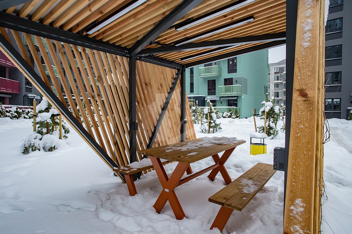 Закрытый двор, видеонаблюдение, детская площадка. Выход в парк, центр района с мероприятиями и трансляциями на большом экране — всё за домом.
