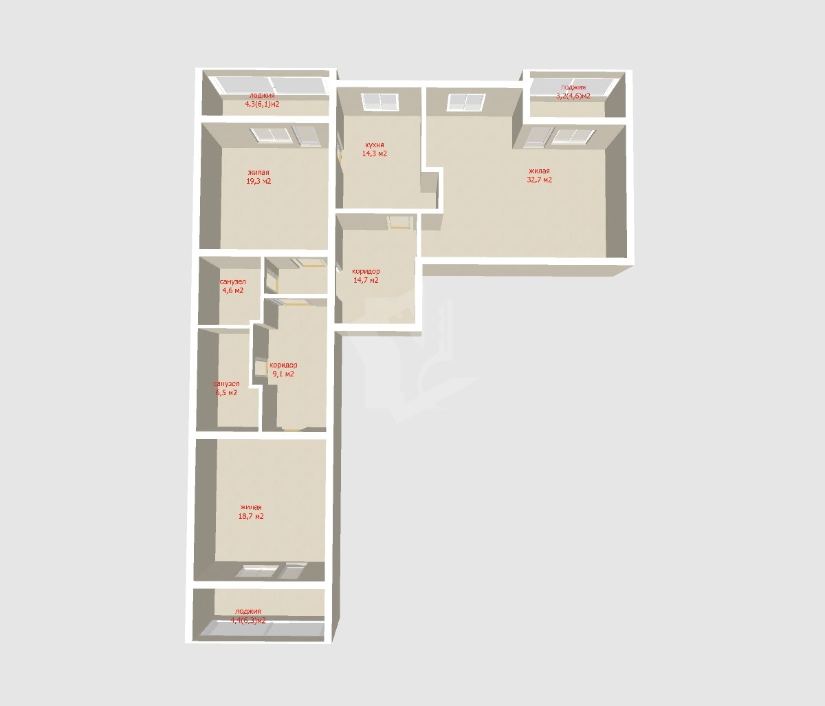 • Квартира: Большая площадь, очень хорошая планировка. 2 санузла, 3 лоджии. Готовый «бетон» для вашей отделки.
