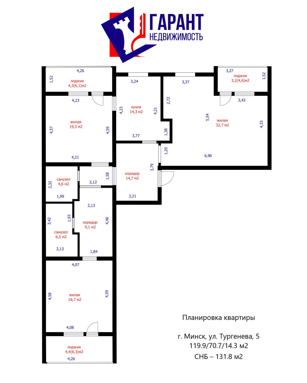 • Площадь: СНБ – 131,8 м²/ Общая – 119,9 м²/ Жилая – 70.7 м².
