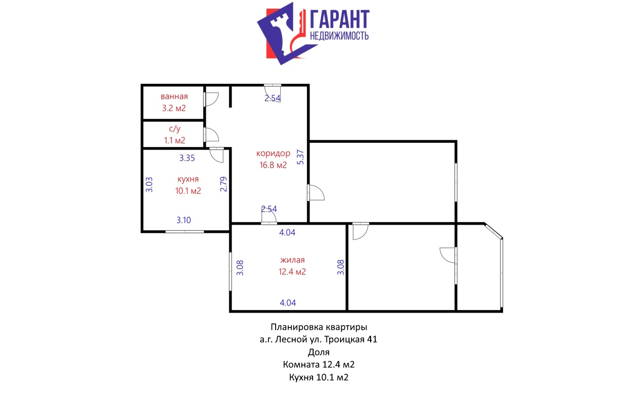Выделенная доля, одна комната в трёхкомнатной квартире в Боровлянах.