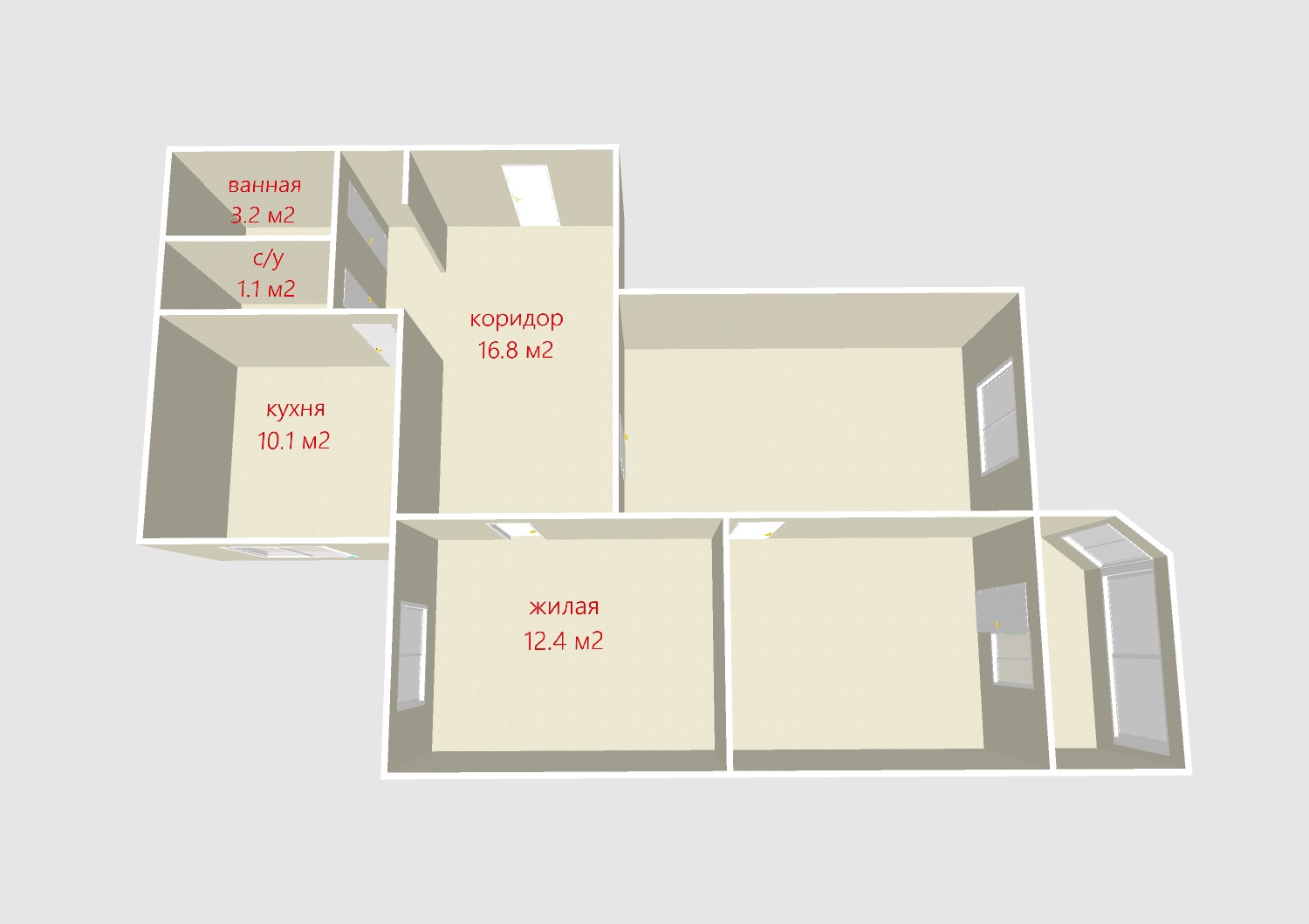 Комната, кухня и санузлы содержатся в чистоте и порядке.