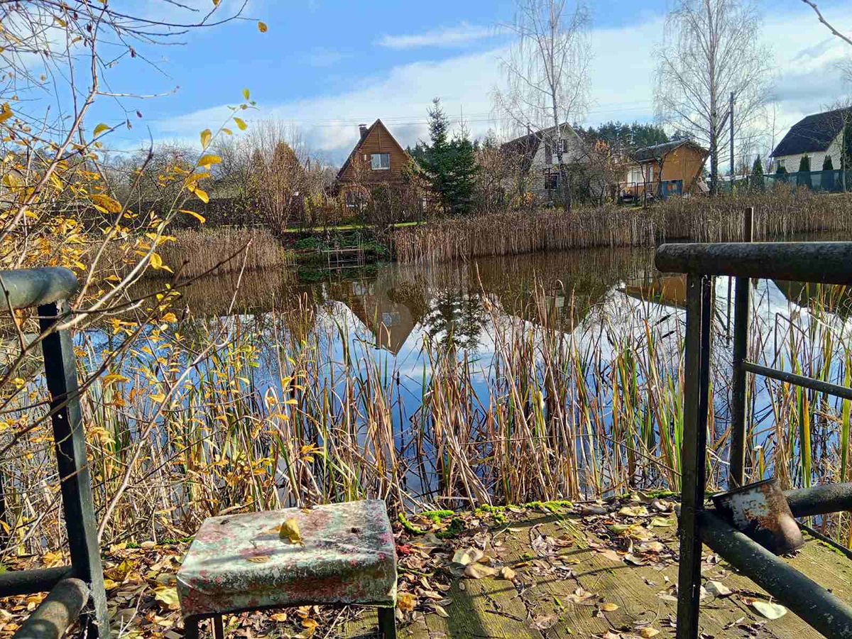 Участок фактически 9 соток с выходом к пруду, одорудованном мостком. На участке имеется садовый домик с пристроенной к нему бытовкой.