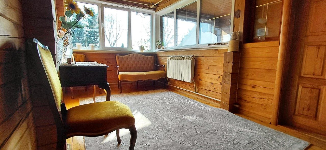 - Качество: Дом из бревна камерной сушки, без щелей, с большими окнами, пропускающими свет.