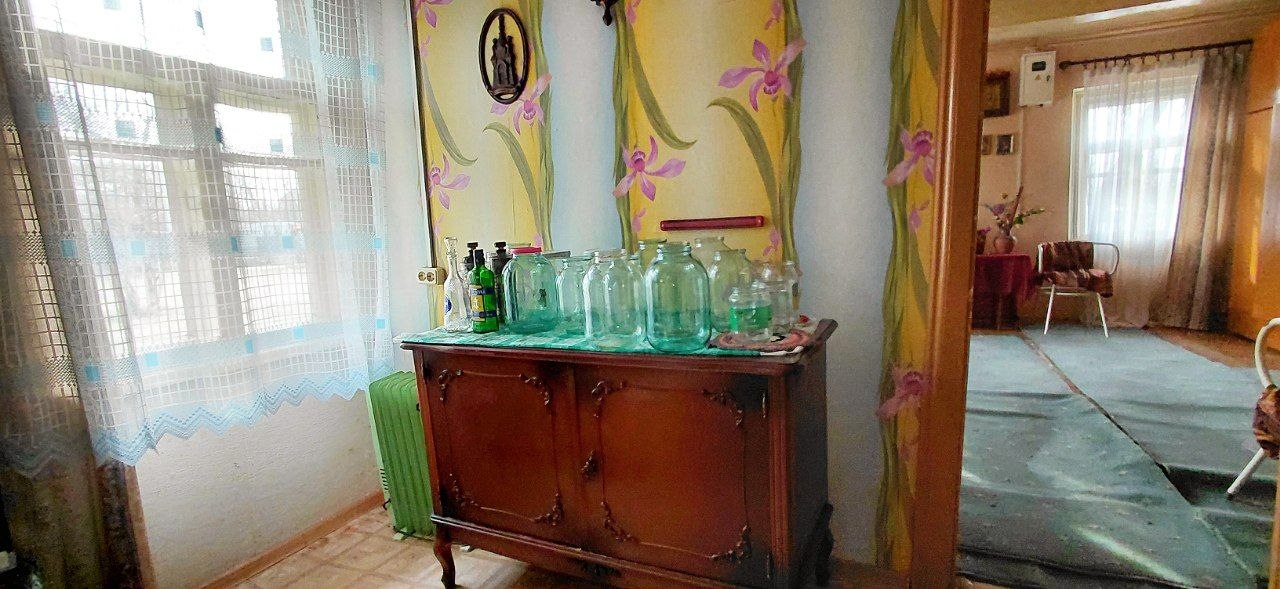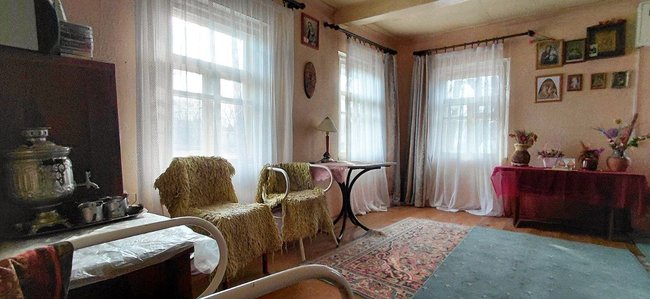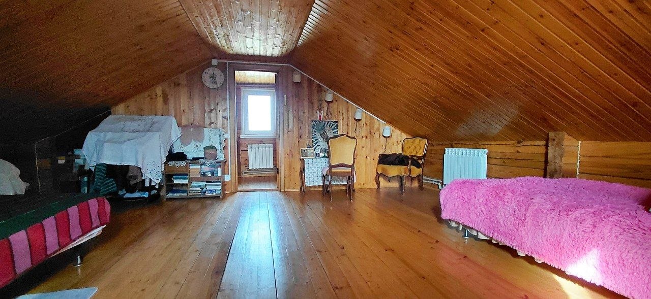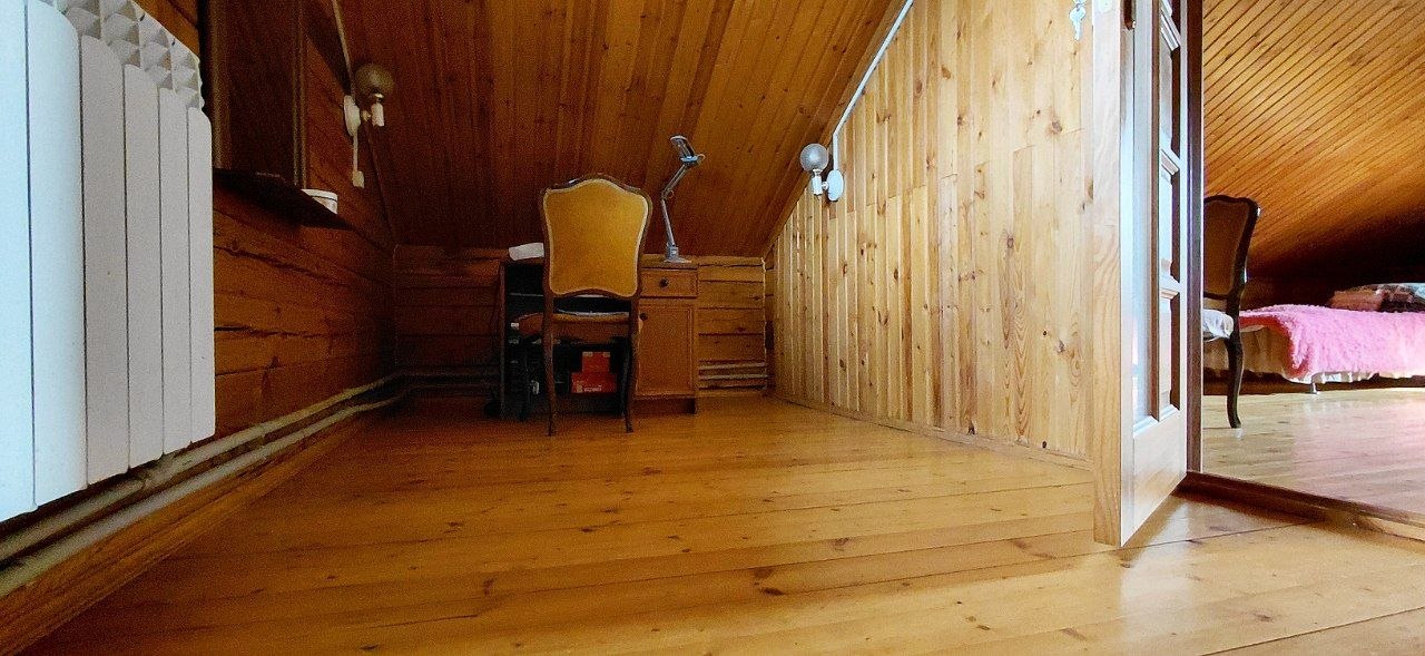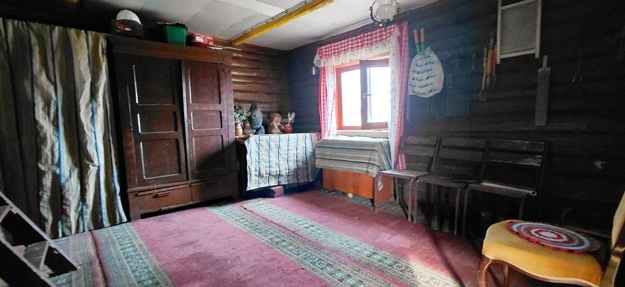 Гордость этой усадьбы — сохраненный дом 1937 года. Это не заброшенный хозблок, а полноценная летняя кухня с характером. За ним ухаживают, он "живой", в нем до сих пор приятно находиться. Две просторные комнаты — идеальное место для гостевой зоны, мастерской или уютных посиделок у печи. Это та самая "история места", которая чувствуется физически.