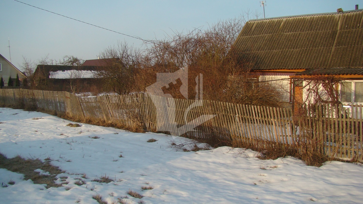 Продаётся дом для дачи, или под снос на участке в 25 соток в частной собственности. Участок огорожен, ровный правильной формы. Рядом проходит асфальтная дорога. В дом подведено электричество 220В, вода в доме центральный водопровод, газ на углу с домом. Деревня живая, снег зимой чистят. Ходят маршрутки, рядом скоростная трасса Брест-Москва.