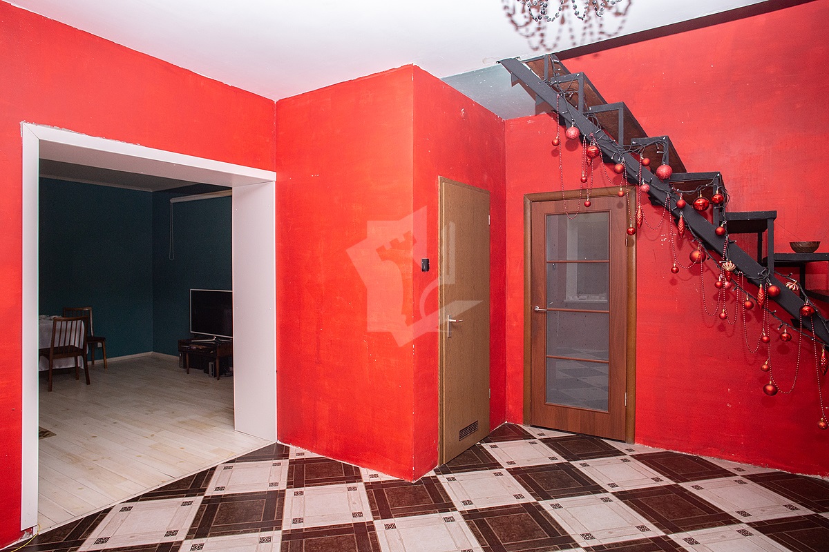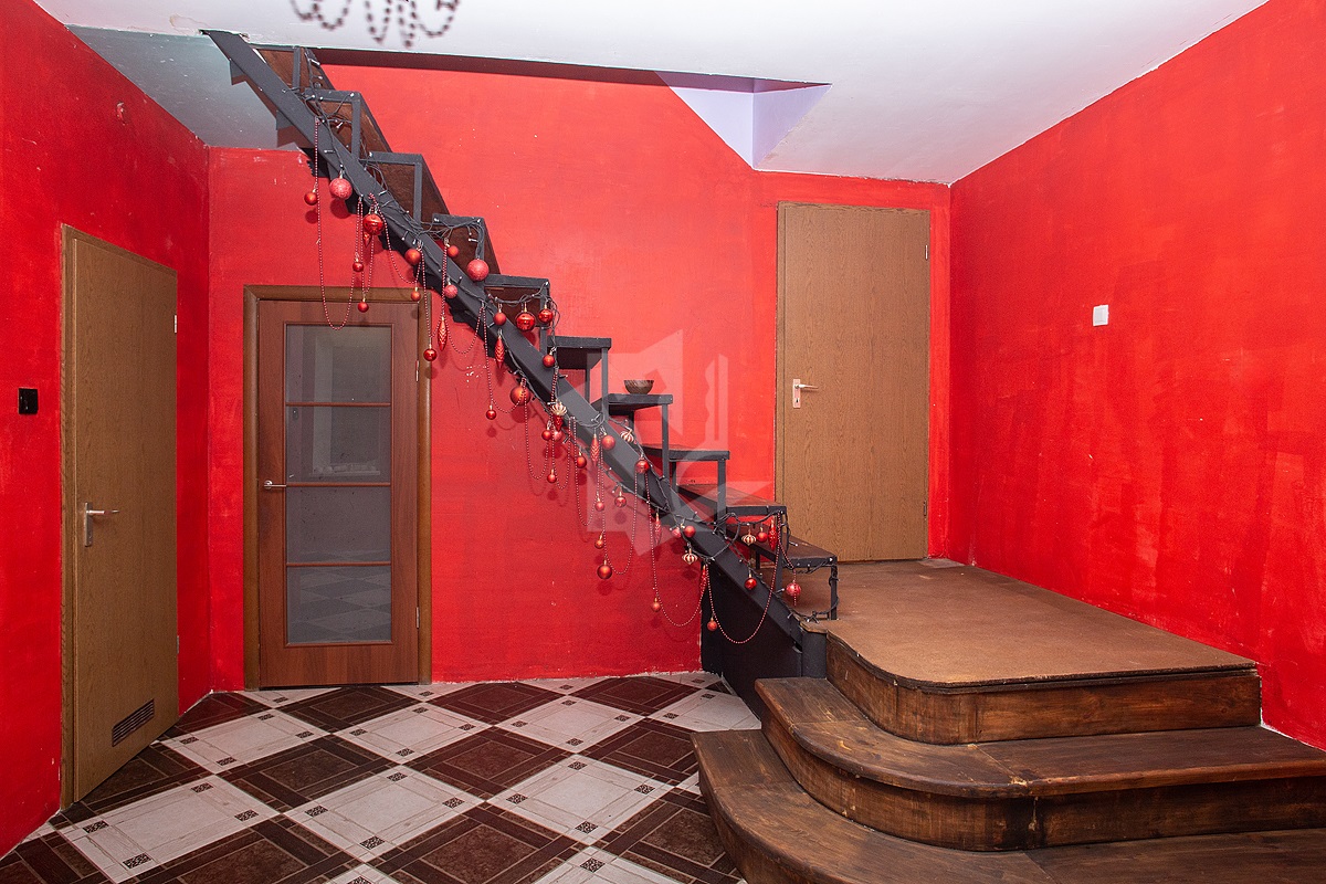 1 этаж: просторный холл, большая гостиная, кухня, сан. узел, кладовая, где оборудован спуск в подвал.