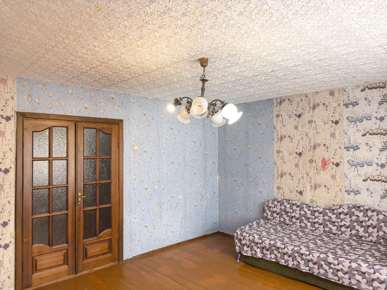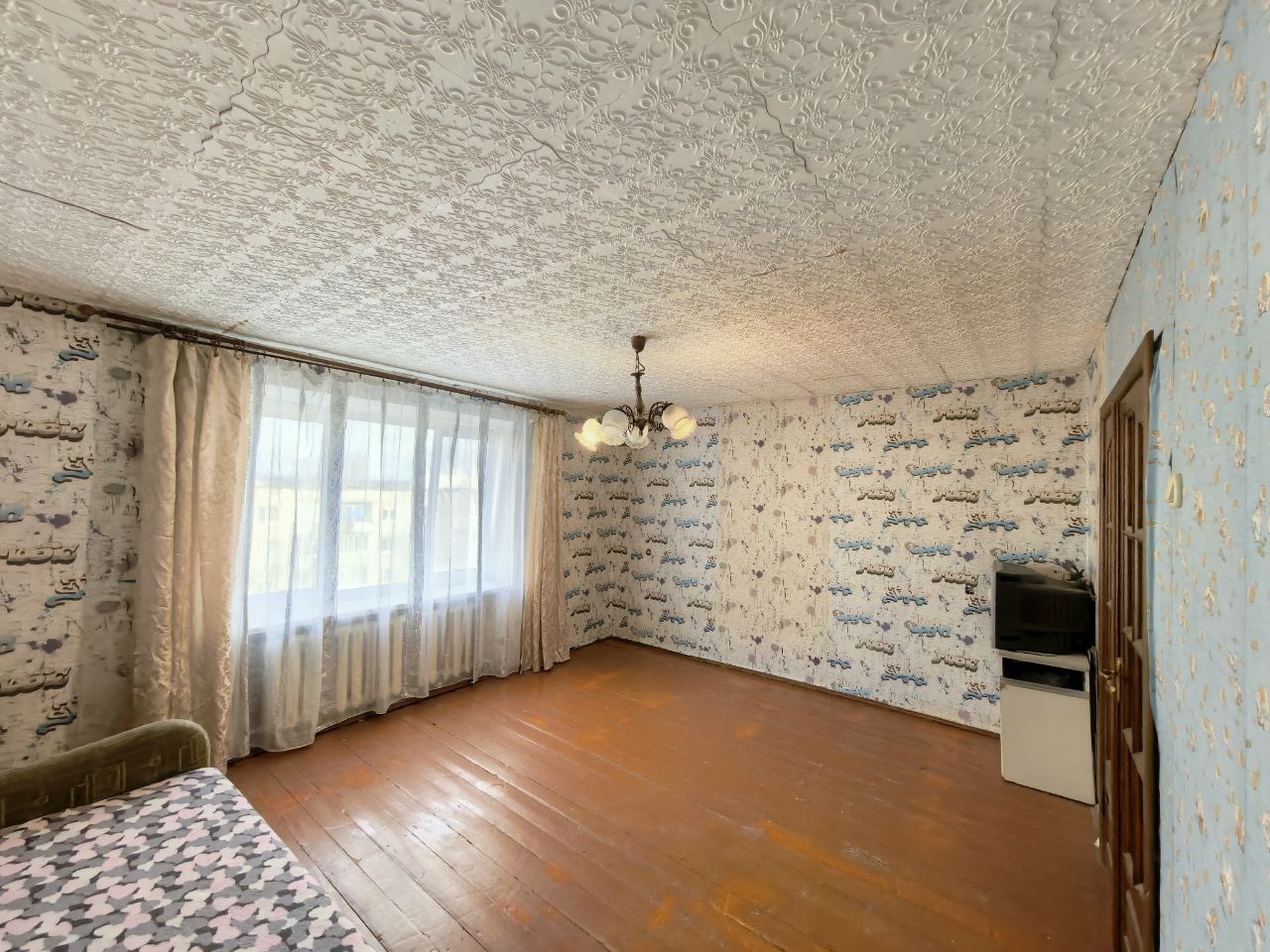 В одной комнате выполнен ремонт.