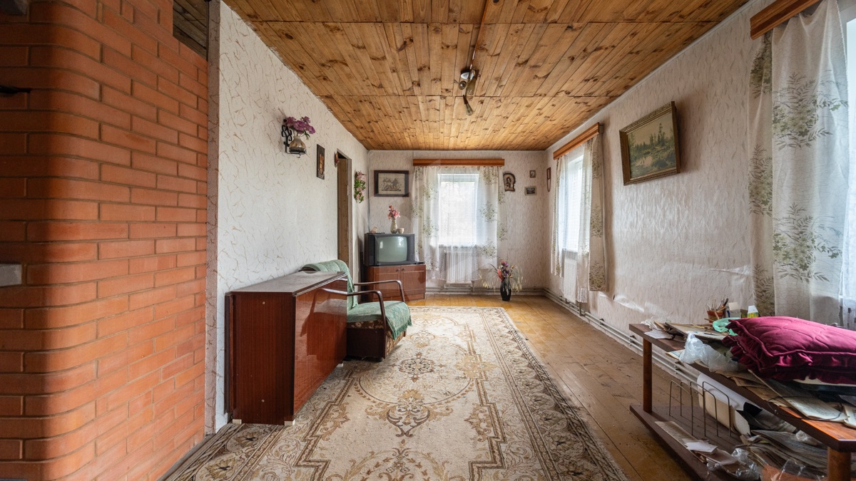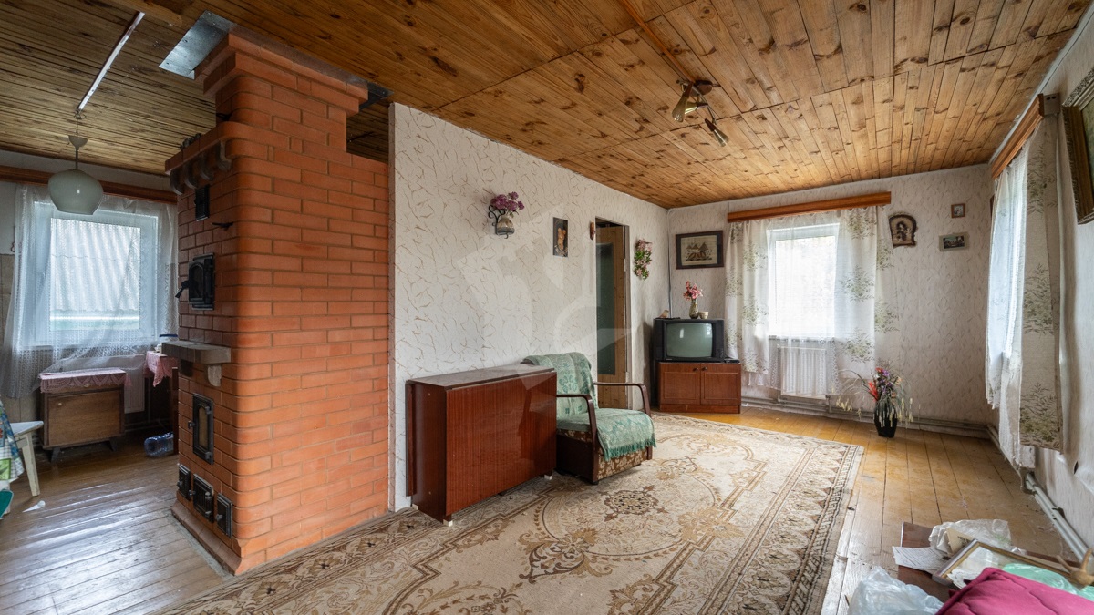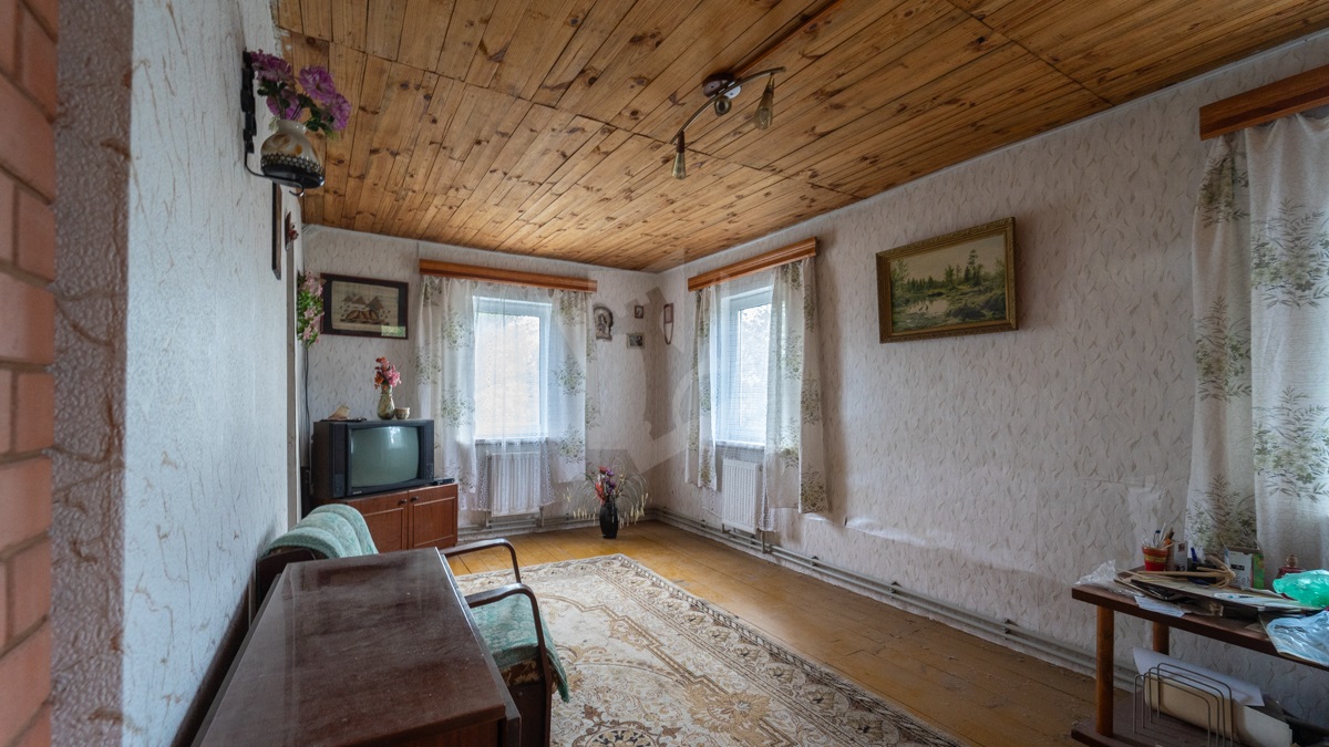 Дом бревенчатый, крепкий и надежный на высоком фундаменте. Перекрытия между цокольным и первым этажами – бетонные плиты. Установлены стеклопакеты.