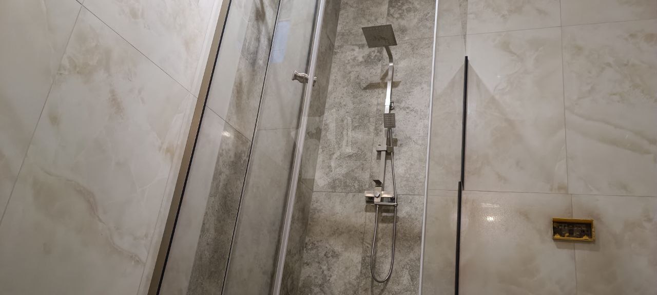- Душевая стойка с перегородкой из закаленного стекла Кристал.