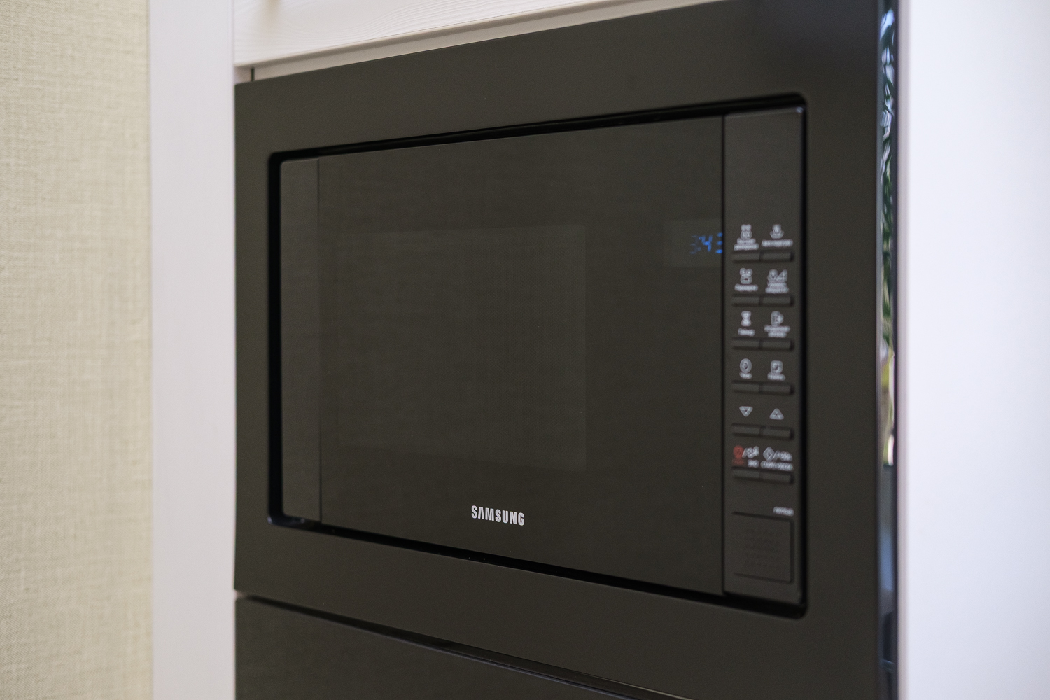 Кухня с техникой Samsung и Maunfeld, итальянская мебель, москитная система плиссе (да, о насекомых подумали на берегу). Въезжайте и живите.