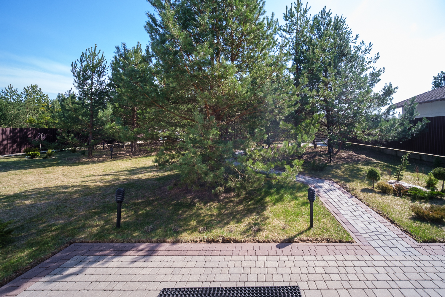 — Свой сосновый лес во дворе (не «соседи через забор», а реальные деревья).