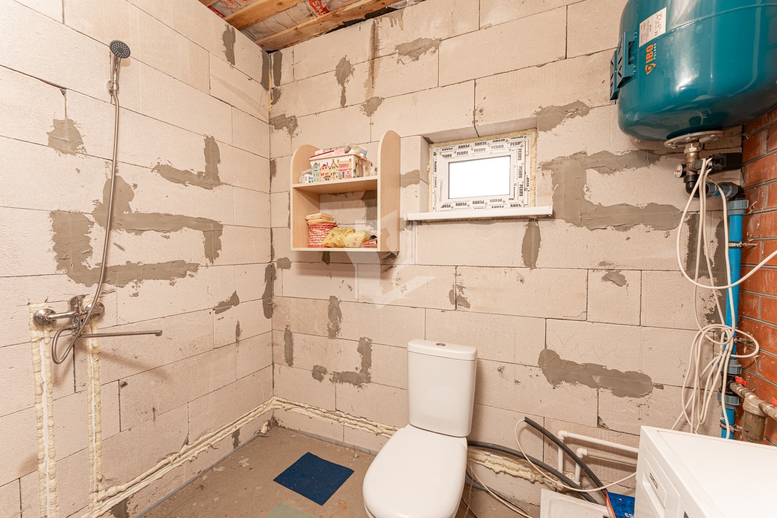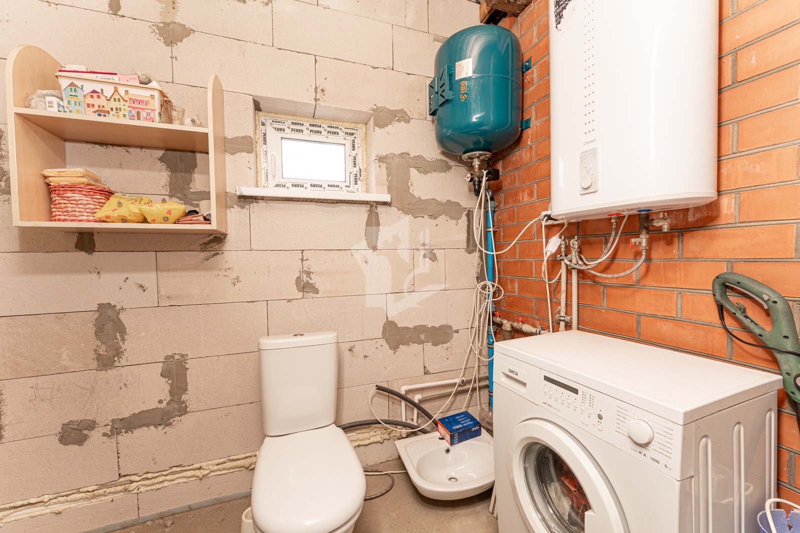 Санузел довольно большой и расположен в доме, подключена стиральная машина.