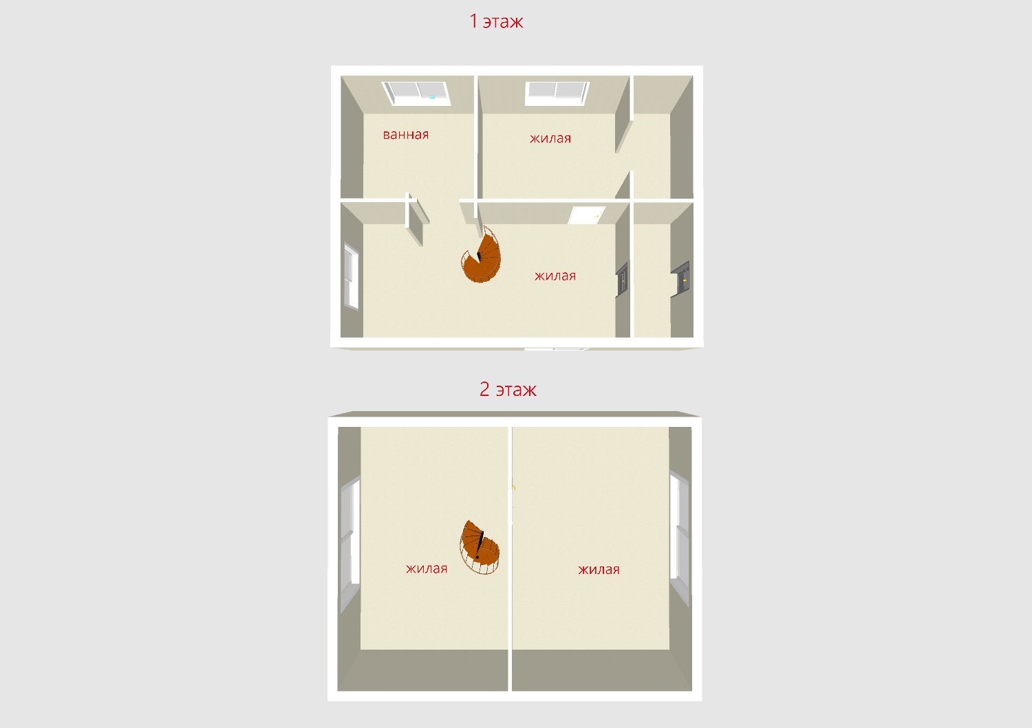 На первом этаже расположена гостинная с кухней, санузел и просторная комната.