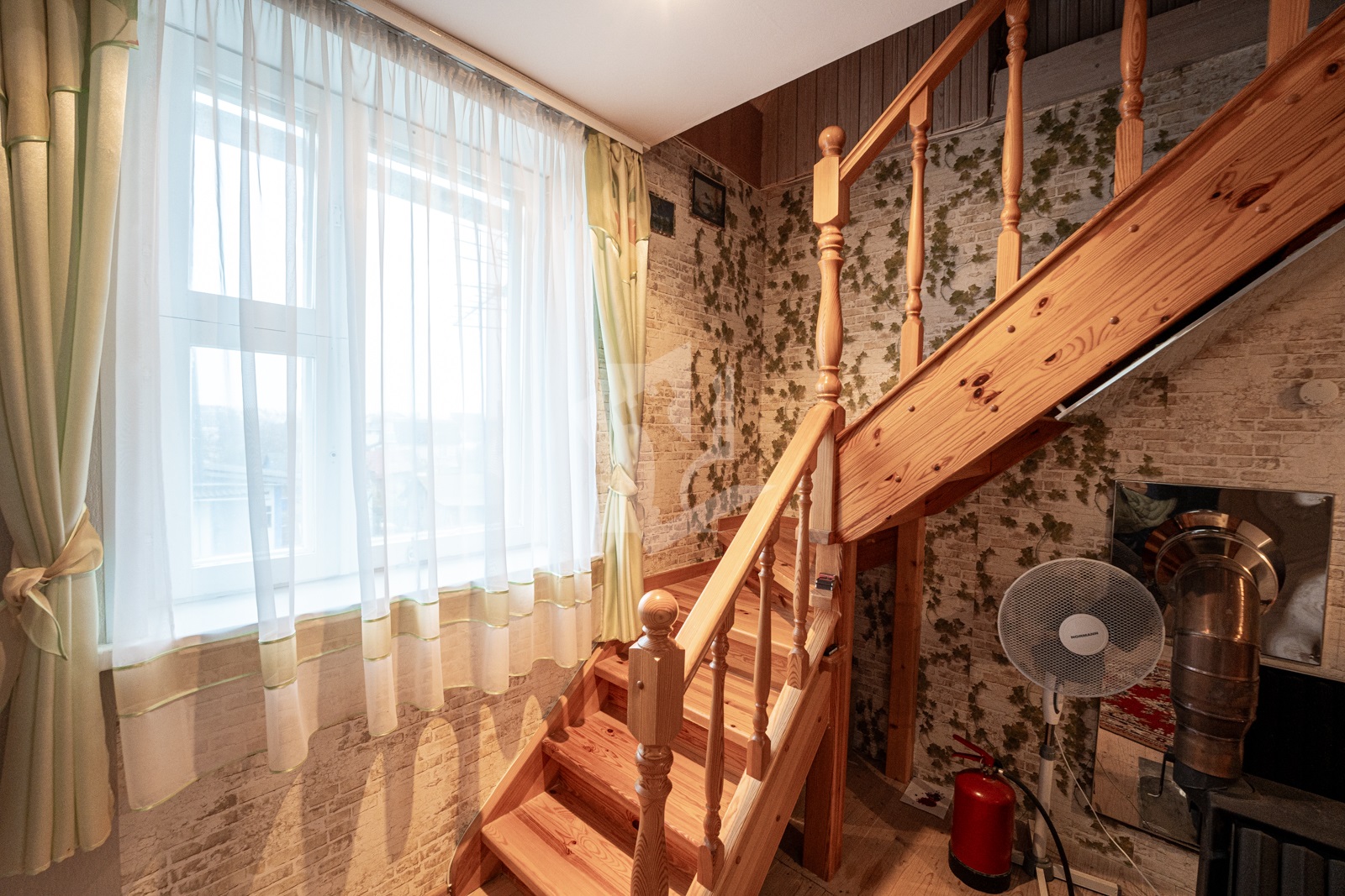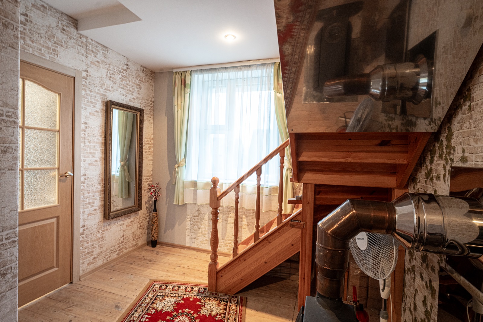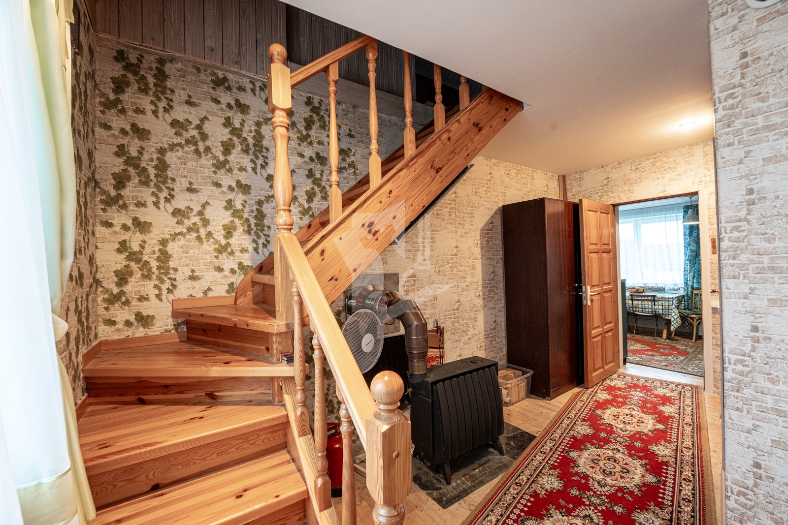 Лестница крепкая из натурального дерева. Много мест для хранения- построены шкафы-купе.