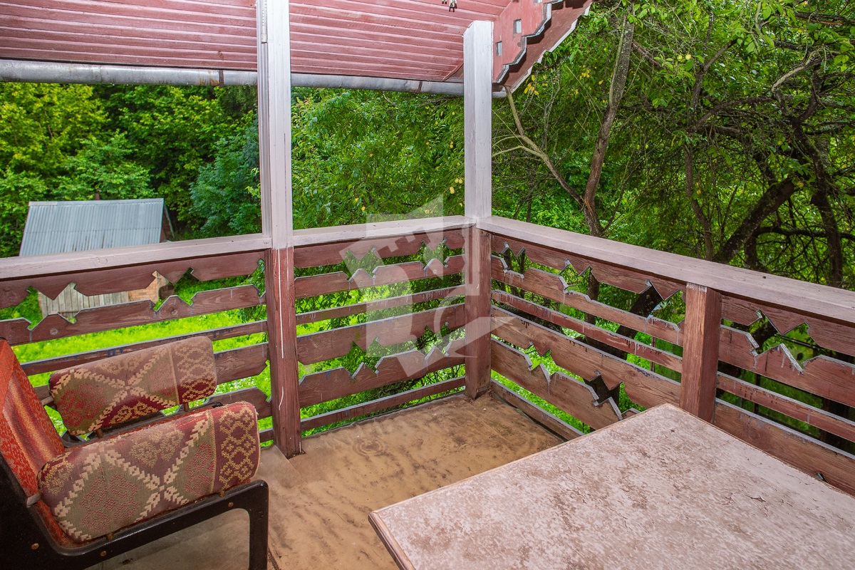 На втором этаже печь и вторая кухня. Всего на втором этаже 4 комнаты и крытый балкон. Есть детская комната с двухъярусной кроватью. удобный балкон с видом на 2 стороны участка(с него просматривается практически весь участок). На втором и третьем этаже много мест складирования вещей.