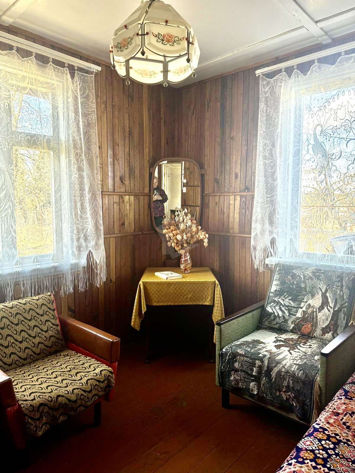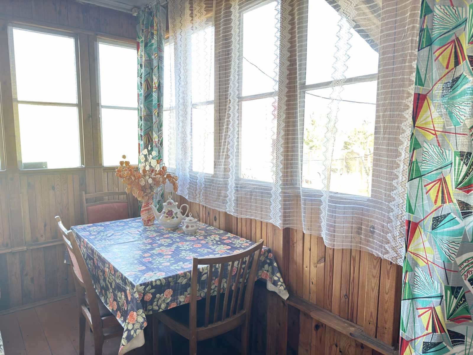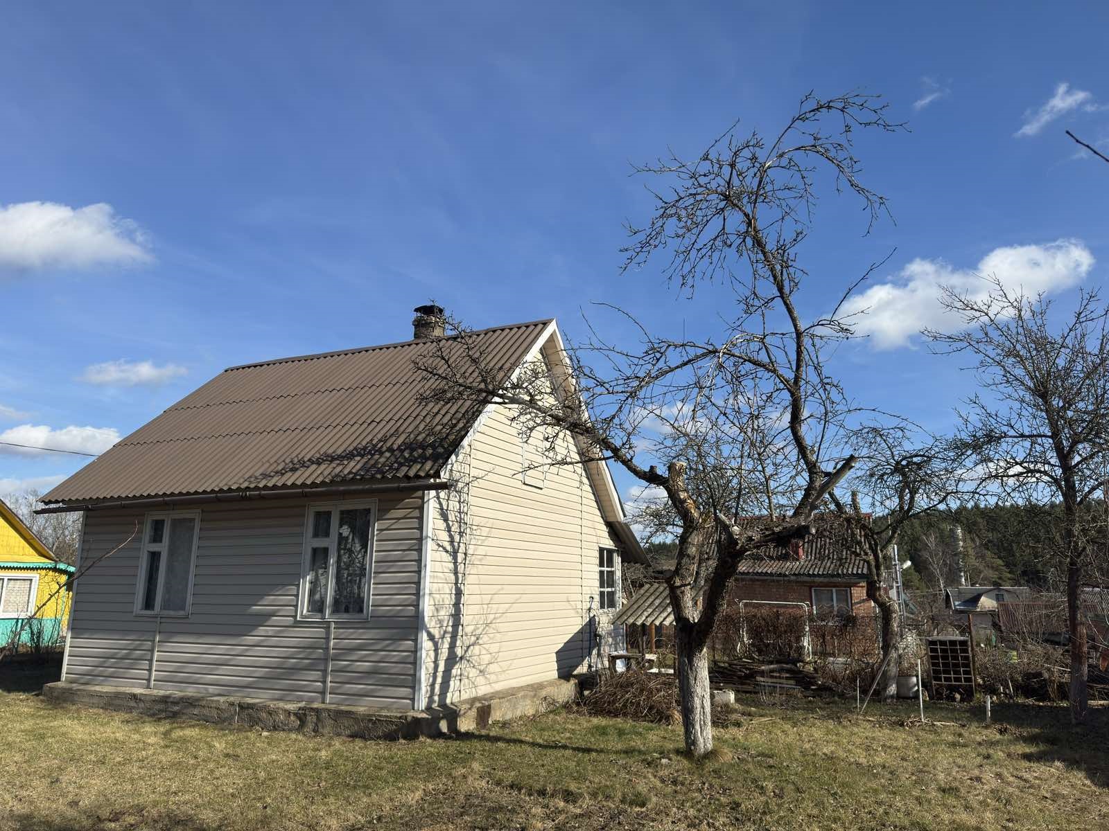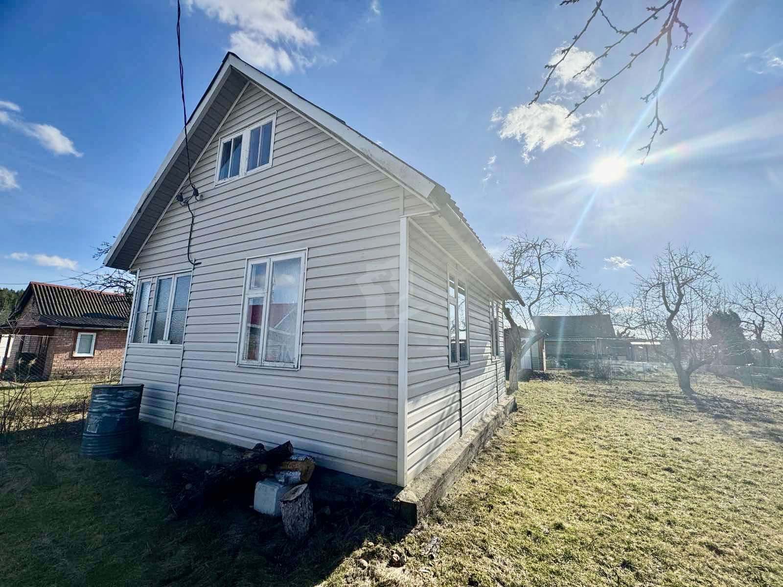 Садовый домик в хорошем состоянии, общая площадь 33,6 кв. м. Две комнаты, веранда, кухня. Внутренняя отделка – дерево, пол - доска пола. Материал крыши – шифер.