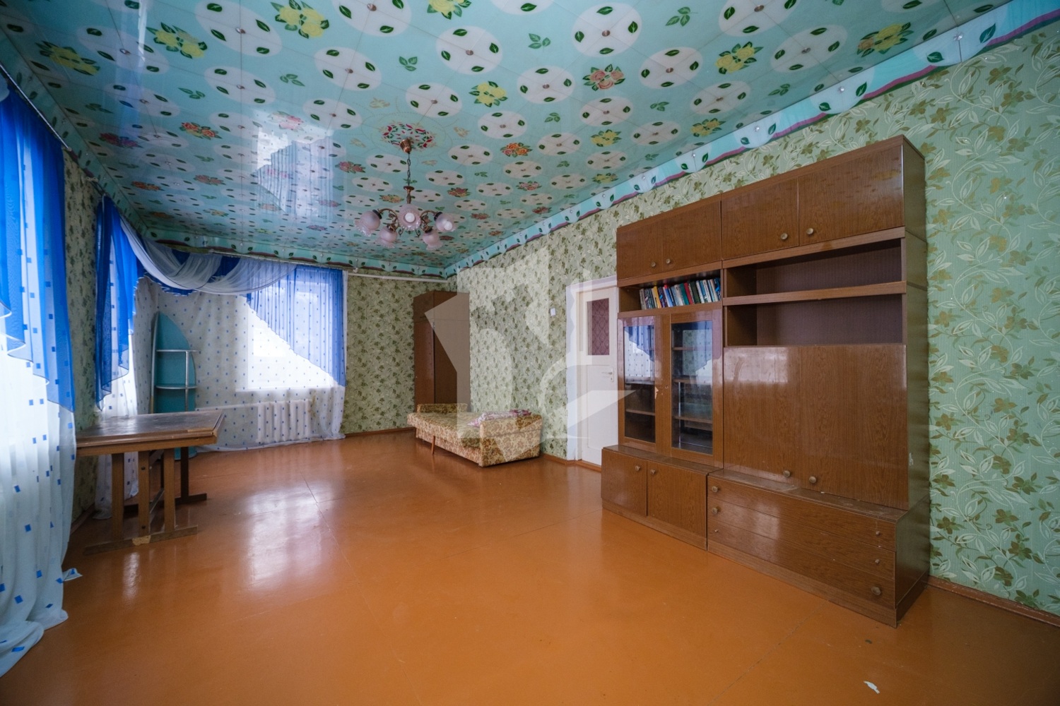 На первом уровне вместительная гостиная зона, две большие комнаты, кухня, раздельный санузел, кладовая. Широкая деревянная лестница удобная, не скрипит.
