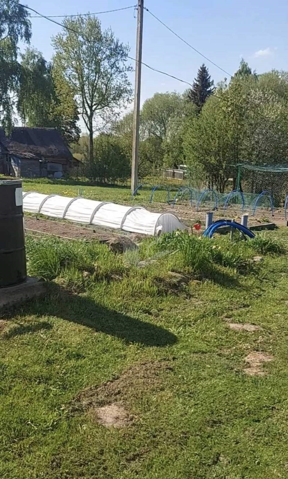 Участок облагорожен, имеются хозяйственные постройки, огород с высокими грядками, плодовые деревья и кустарники, клумбы с цветами, красивые ели и ивы, большие деревянные садовые качели и даже пруд!