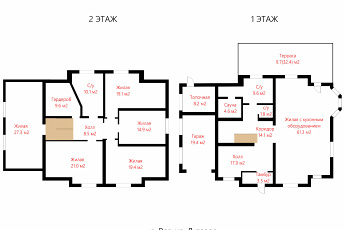 Третий этаж: холл, 3 спальни, 2 балкона, бильярдная, ванная, санузел.