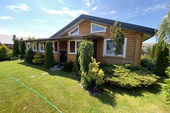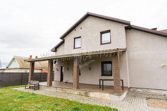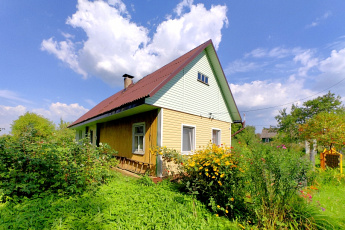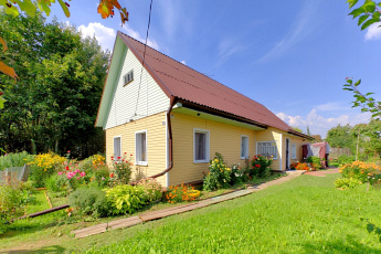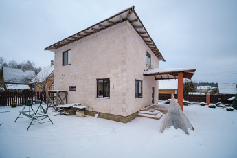 Коттедж утеплен, внешняя отделка штукатурка, покрашена устойчивой импортной краской для наружных работ.
