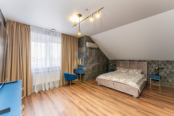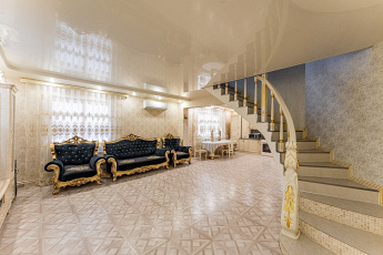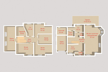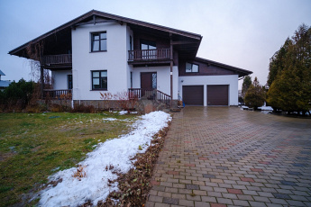 Общая площадь коттеджа – 765.8 м2, жилая – 263.3, высота потолков 2.95 – 4.80м.