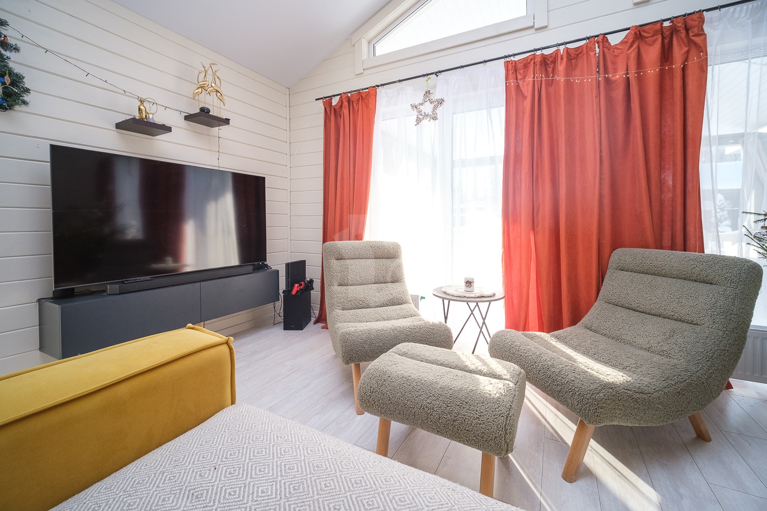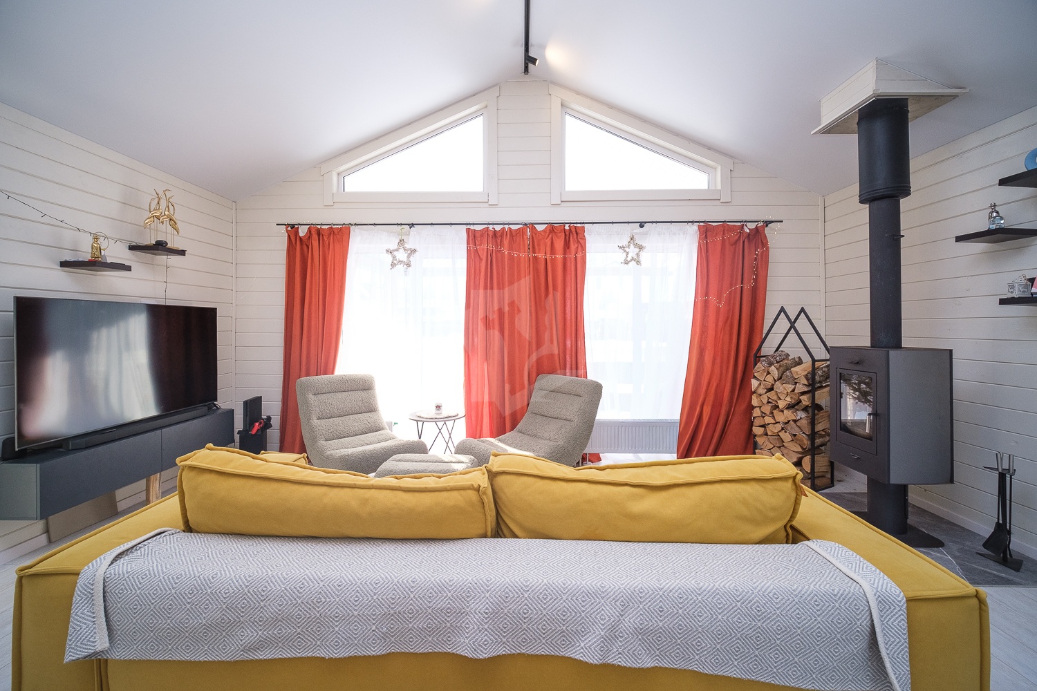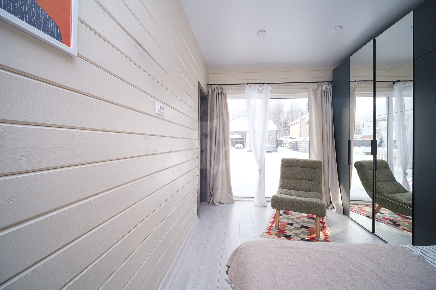 Материалы стен: дерево, краска Тикурилла