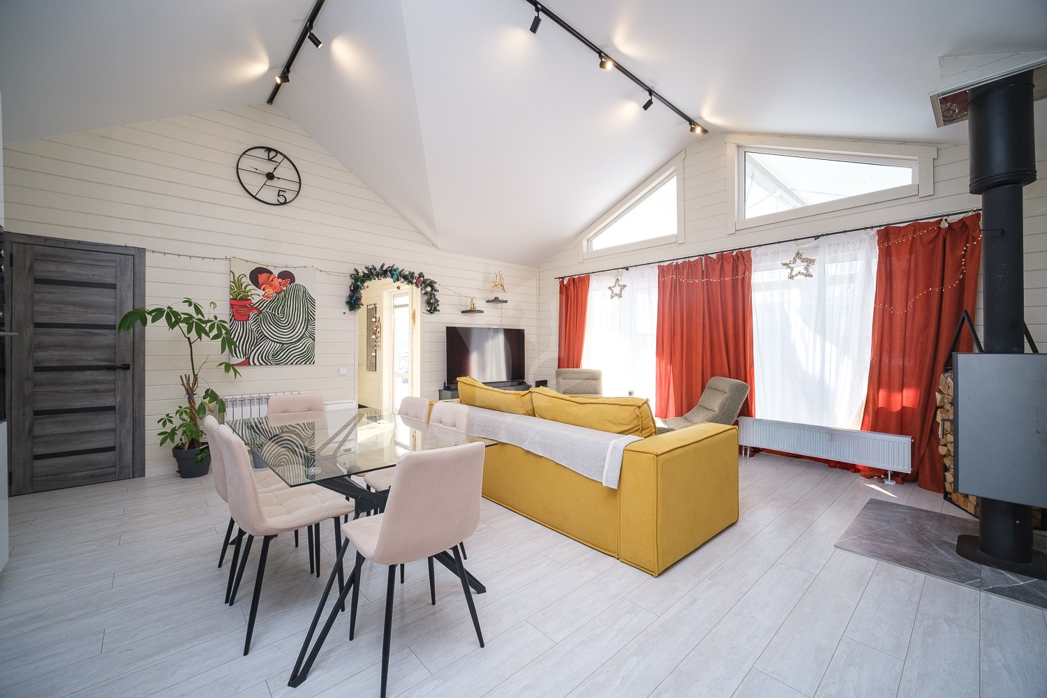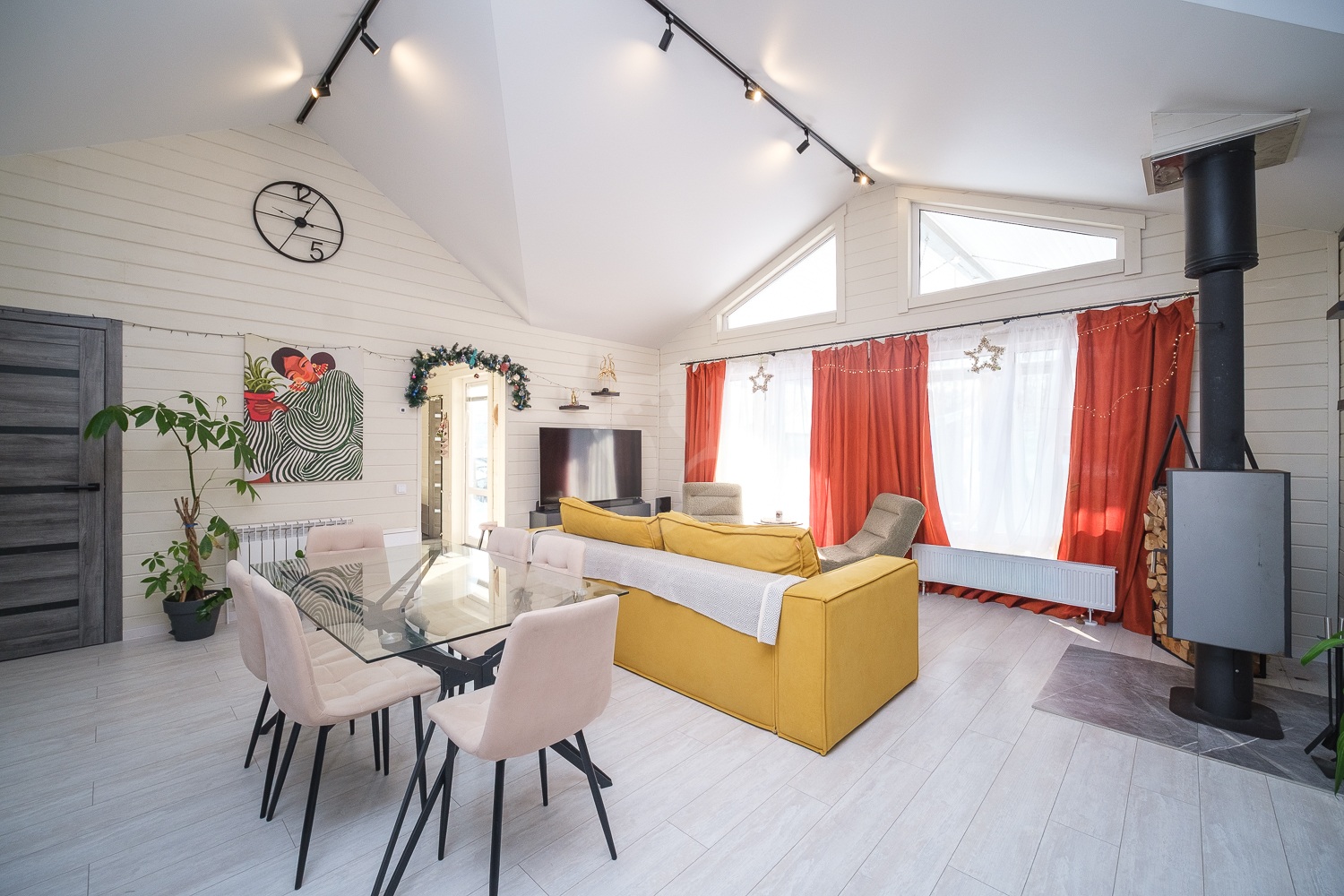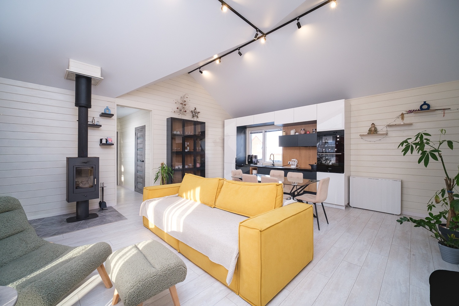 В доме электрическое отопление, установлен котел Гризли с дистанционным управлением через приложение. А также в доме есть печь-камин, которая дает очень хороший обогрев и эстетическое удовольствие.
