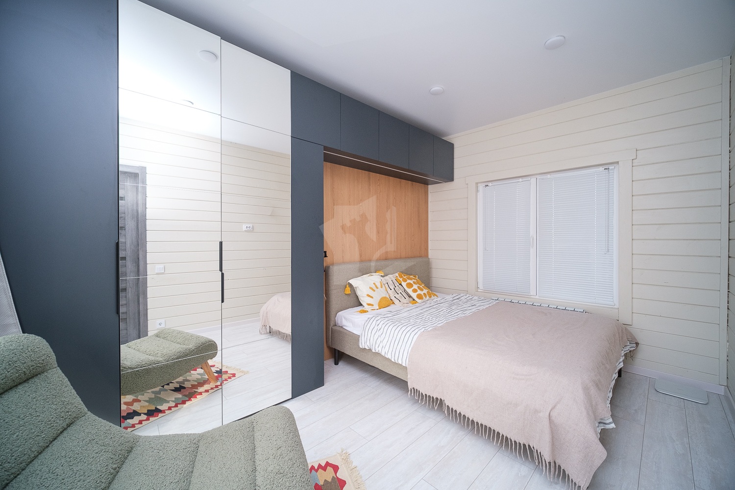4 комнаты: кухня-гостиная 35,4 м, спальня 1- 11,4 м., спальня 2-11.1 м, спальня 3-9.5 м., коридор- 4.5 метра, санузел-4.6, есть гардеробная и котельная.