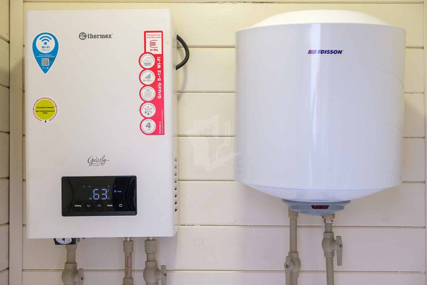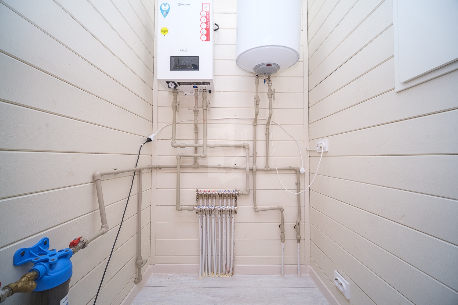 В котельной установлен бойлер для обогрева воды.