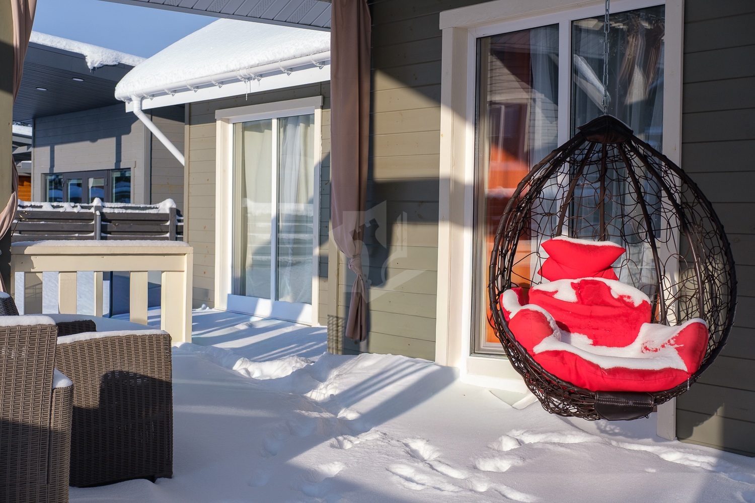 Выход на террасу изнутри и снаружи дома.
